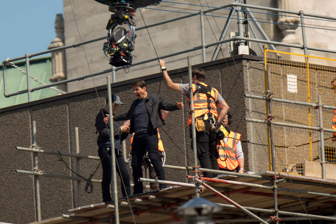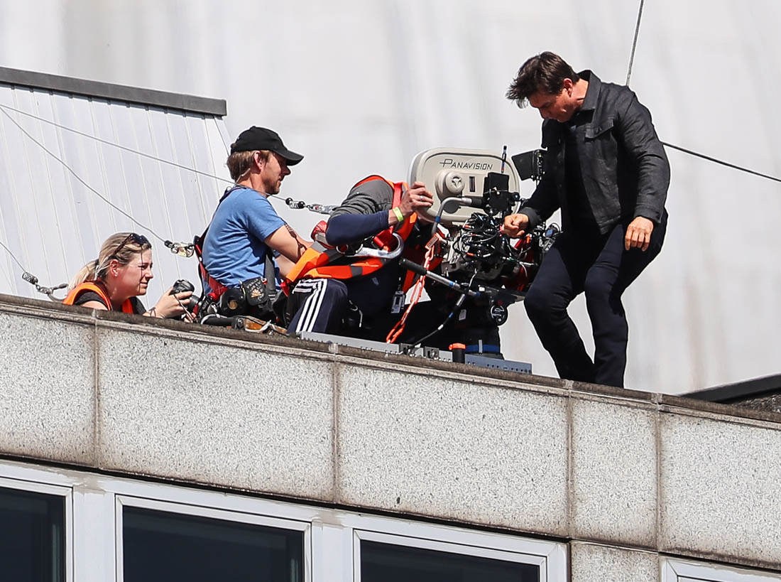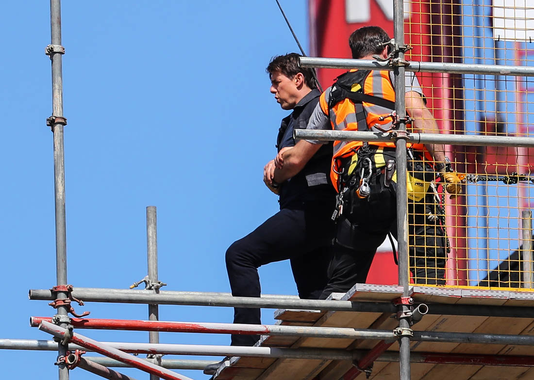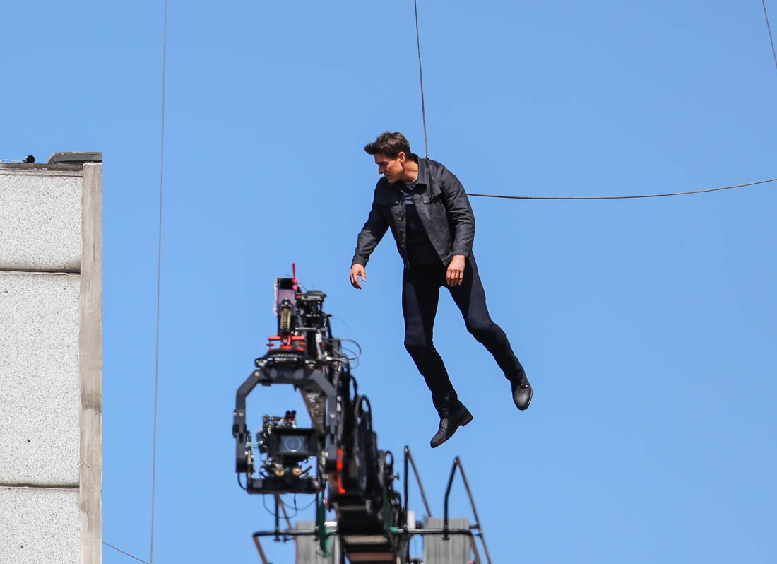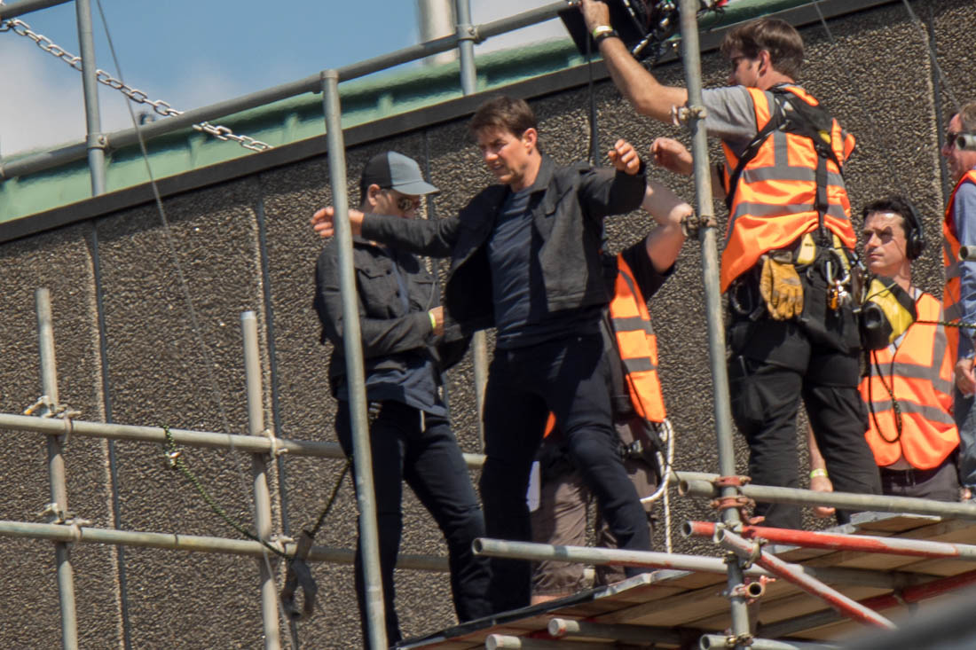 Tom Cruise was shooting Mission: Impossible 6 this weekend. For one particular scene he was attached to a harness and had to jump from a scaffold onto the roof of another building. As we all know, Tom does most of his own stunts. That’s one of his trademarks. He will be the one hanging off the side of the tallest building in the world. He will be the one to dangle off the side of a moving airplane. TMZ reports that he tried the stunt at least twice because evidently he wasn’t making the leap clean. As you can see in this video, he hits the wall hard and then comes up limping: