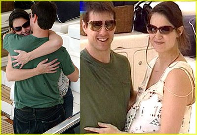 Split? I don’t think so. Like I said yesterday there will be no split unless the Church of Tom allows it. And I think we can all agree that now is not the time. Fresh off the Life & Style report that had them separated undercover, the Crazies showed up in Australia today in a very public show of affection and togetherness. In the immortal words of Will Ferrell doing George Bush - is this all about strategery? You bet. But it’s just another sign that our hopes of their love termination have not been realized. On a related note, I’ve received many queries from you about this mysterious Morton book destined to rip the lid off of Scientology and the Cruise gayness. And since I’m not in the business of putting my Chinese ass out there to get raped by the Tommy legal team and sodomised by Church henchmen, I’d prefer to say as little as possible about what Andy might be brewing. However, since I know it’s my duty to deliver the smut, I will tell you that word along exclusive gossip wires is that Mr Morton might have damaging evidence about swimming functionality along with explosive insider knowledge about just how deep-rooted and frighteningly powerful the Church really is. Which is why I think Scientology is so amazing and enlightening and f*cking awesome!!! Anyway, save up your forty bucks y’all. The Morton hardcover should be out by the end of the year.