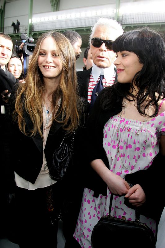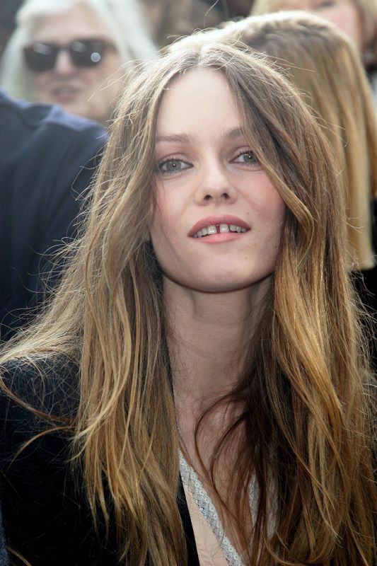 Call me Cruise, I know you won’t agree…but something about the fact that she never fixed her teeth – it totally turns me on. Vanessa Paradis, longtime love of Johnny Depp, at the Chanel show earlier today, sometimes open-mouthed, sometimes closed-mouthed, and really quite beautiful in her own indescribable way…like you want to keep looking at her, she is interesting to look at, she is absolutely NOT a generic blonde, unlike Diane Kruger and Kate Bosworth, sitting side by side – can you tell them apart? Can you really? Vanessa might be freaky, that gap is pretty frickin’ vast, but still…there’s a lot to be said for attitude and originality. I never understood Johnny but I’m starting to now… Source