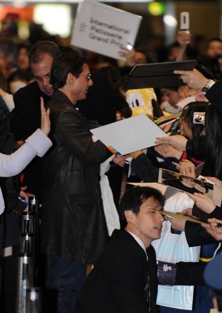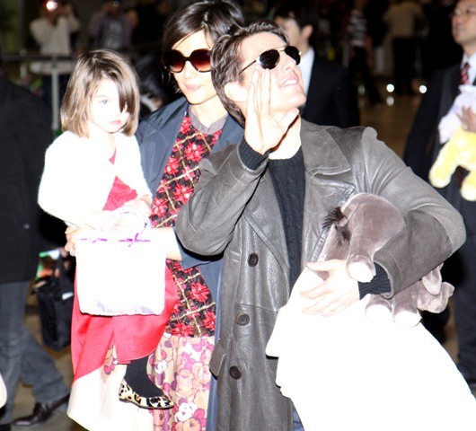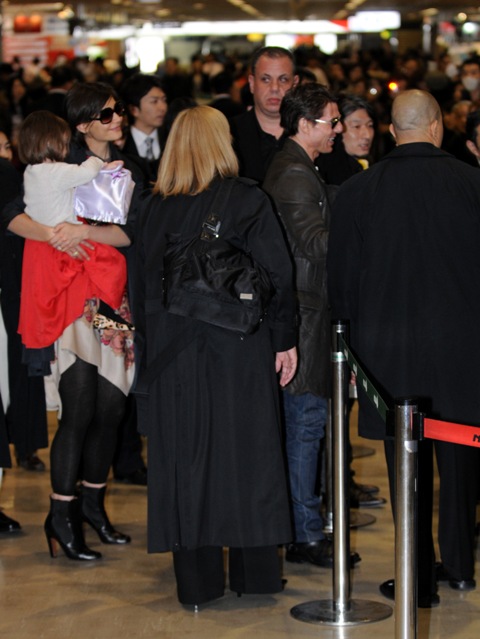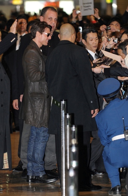 Tom Cruise, Robo, and Little Sci arrived in Tokyo this weekend to promote Valkyrie. They were greeted at the airport by hundreds of screaming Hello Kitties eager for a glimpse of Mr America.
