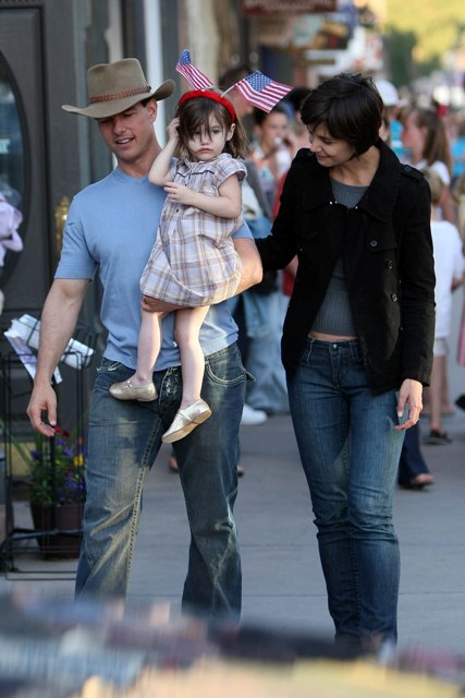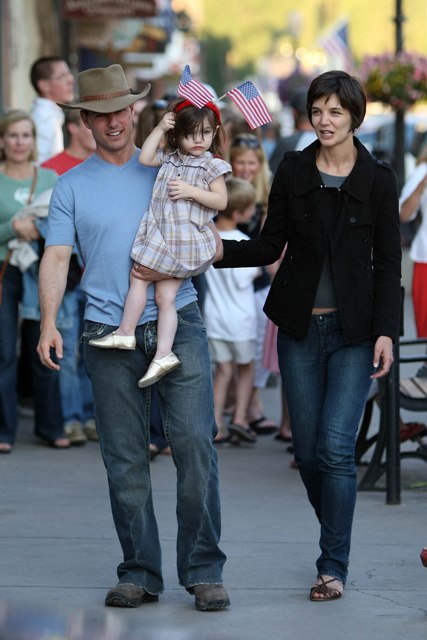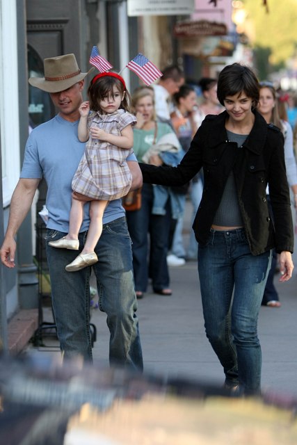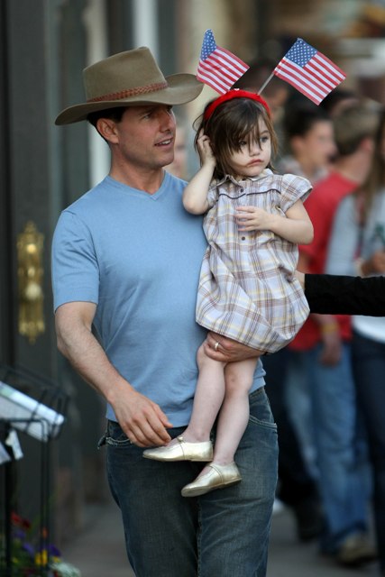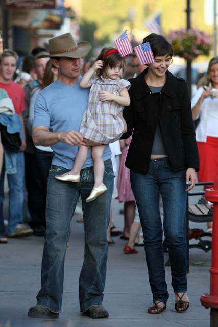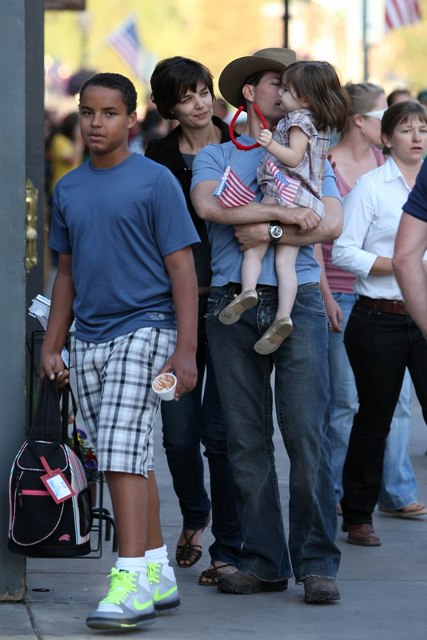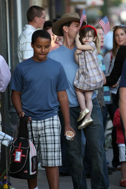 Katie Holmes can’t sell tickets on Broadway, then new sets of photos of KatE with Little Sci are immediately released last week, culminating in these family shots of the Cruises in Telluride enjoying the Fourth of July parade with Little Sci front and centre and sooooo adorable! And becoming so beautiful!