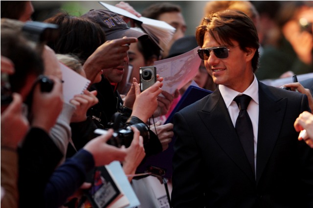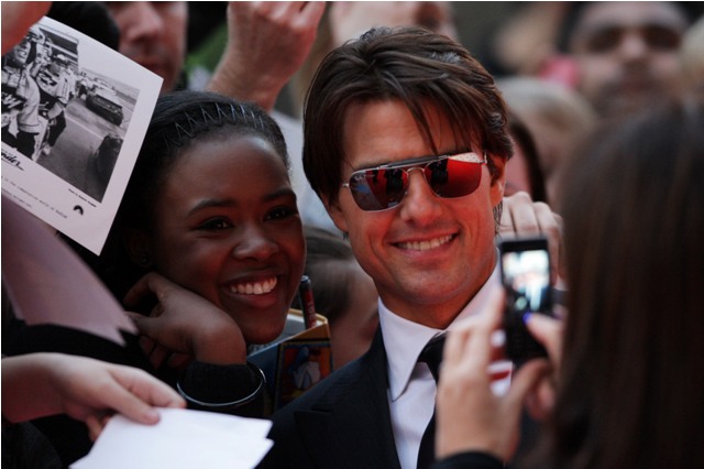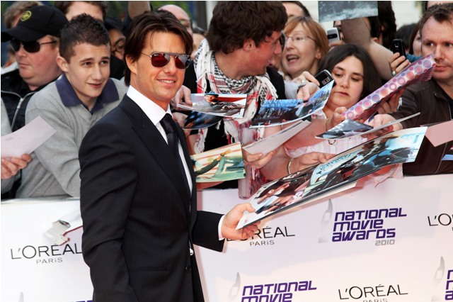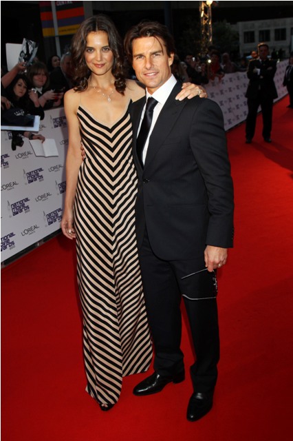 Like I said, this guest list at the National Movie Awards tonight in London was quite impressive. Tom Cruise is a major get. And he showed up tonight with a geo-striped dress that looks better when she’s stationary than when she’s moving around. Partly because I think the booties are too heavy with the length and also because her gait isn’t great.