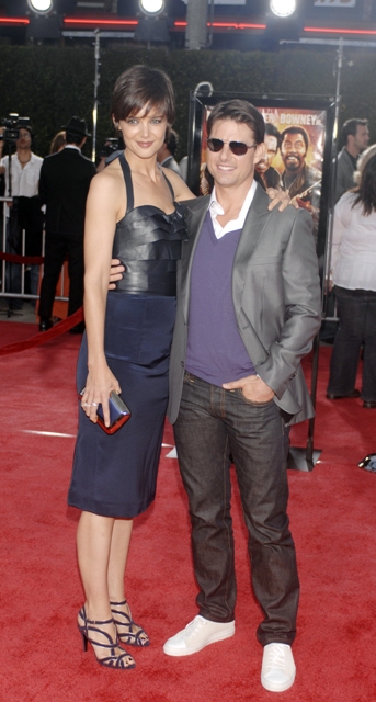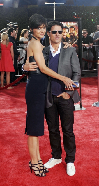 Here they are at last night’s Tropic Thunder premiere scaring the sh*t out of everyone, as usual, with their over-exuberance. Like you’ve never seen happy until you’ve seen these two happy. Together. Like you’ve never seen a smile until you’ve seen Katie and Tom smile. Together. The effect though, as described by those who’ve had the pleasure to witness it, is hilariously frightening, not unlike watching a horror movie and nervously giggling through the build up to the scary parts.