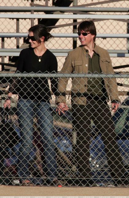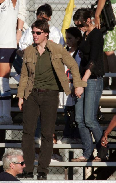 Katie Holmes is so wholesome and so appealing, I’m almost willing to buy what she’s selling. Almost. I’d be more inclined to believe this sh-t, however, if HE wasn’t in the picture - with his too tight tapered pants and his need to lead, Tom Cruise kills Katie’s fetching illusion, and according to The Scoop, Scientological marriage rituals will kill Katie’s self esteem. The Secrets of Scientology website reports that during the wedding ceremony, the bride is referred to as a “girl” while the groom is acknowledged as the “man” whose duty it is to provide for his new acquisition. Money, you will note, factors prominently: Abridged vows for the bride: “And do you take/His fortune/At its prime and ebb/And seek/With him best fortune/For us all?/Do you?” Weird. Is it just me or do those vows sound like they were written by a Chinese person? Do it with an accent…see what I mean? Sorry, I digress. Abridged vows for the groom: “Now, (groom"s name),/girls need clothes/And food and/Tender happiness and frills/A pan, a comb,/perhaps a cat/All caprice if you will/But still/They need them./Do you then/Provide?/Do you?” Girls need food and frills??? Look – I’m no bra burning feminist and ordinarily, I’m not the kind of person who will launch into sanctimonious rhetoric at the opening of a door. But the UNsubtle suggestion here that a woman’s frivolous needs can only be fulfilled by a man’s effort is nothing short of insulting, not to mention archaic and ridiculously juvenile. Anyway, here’s Katie at the weekend soccer game, joined by Jada Pinkett Smith (where the hell are her friends???), evidently dreaming of pans and combs and cats and other capricious items - items readily available at Barney’s perhaps, where she was headed shortly after, apparently for some last minute wedding outfits before jetting off to Armani’s villa in Italy which is the new rumoured location per Jeanette Walls, though some are saying it’s all an elaborate decoy to conceal where they will really tie the knot. Ummm…Tom Cruise miss a photo opportunity??? Please. Like the Kidman/Urban nuptials, by the time this thing happens, we’ll all feel like we had a front row seat. Source and Source