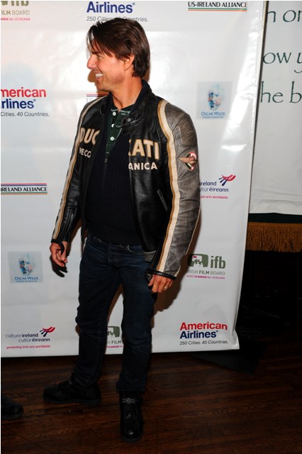 Tom spoke last night at the 5th Annual Oscar Wilde: Honoring The Irish In Film event, riding up on his bike, all manly mans in his biker jacket, delivering his remarks with trademark intensity and jaw-clenching emphasis. Then he laughed in the audience, as usual, like the jokes he was hearing were the funniest he’s ever heard in his entire life.