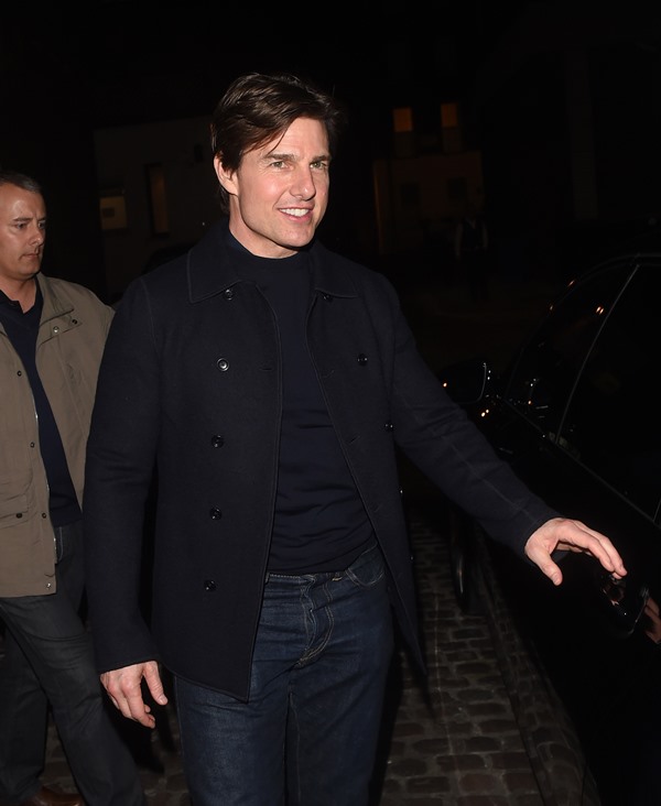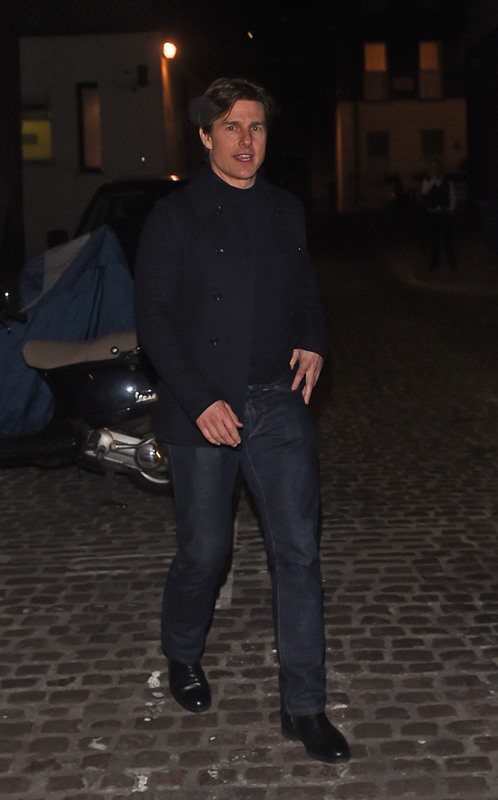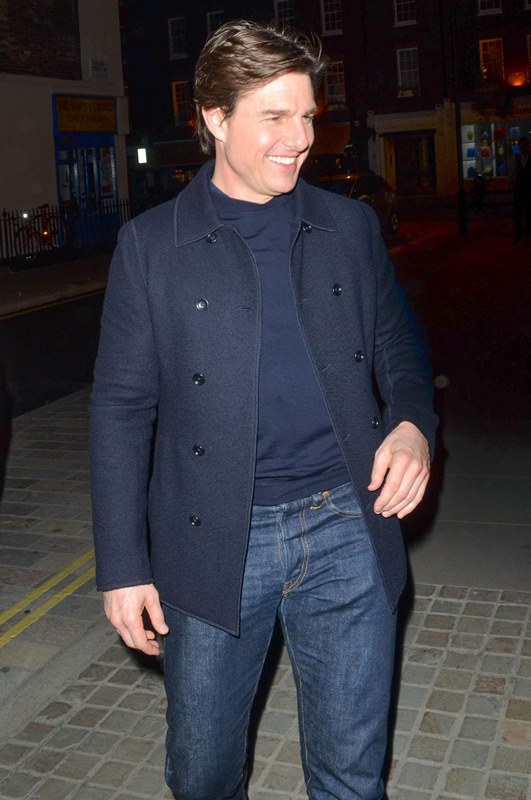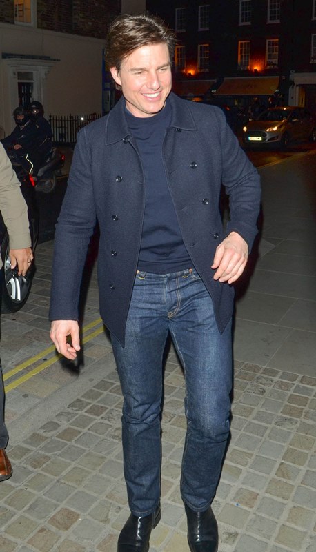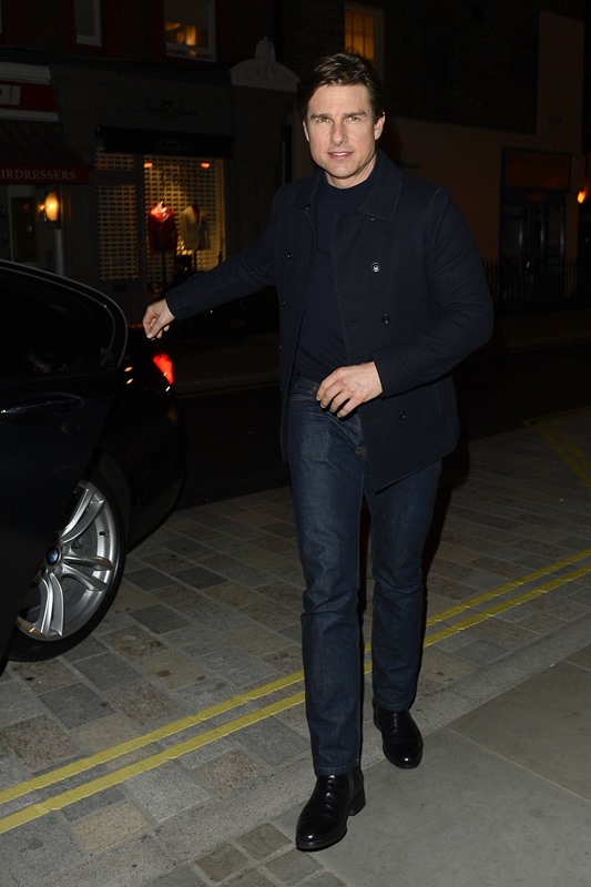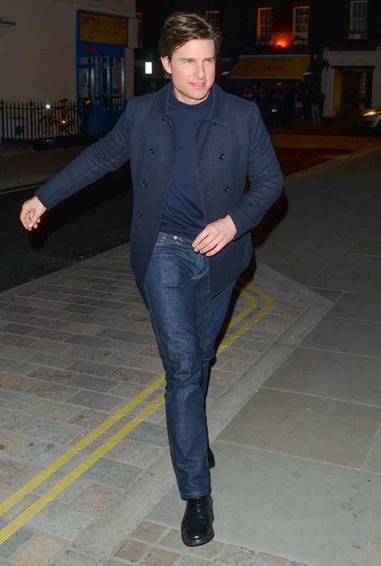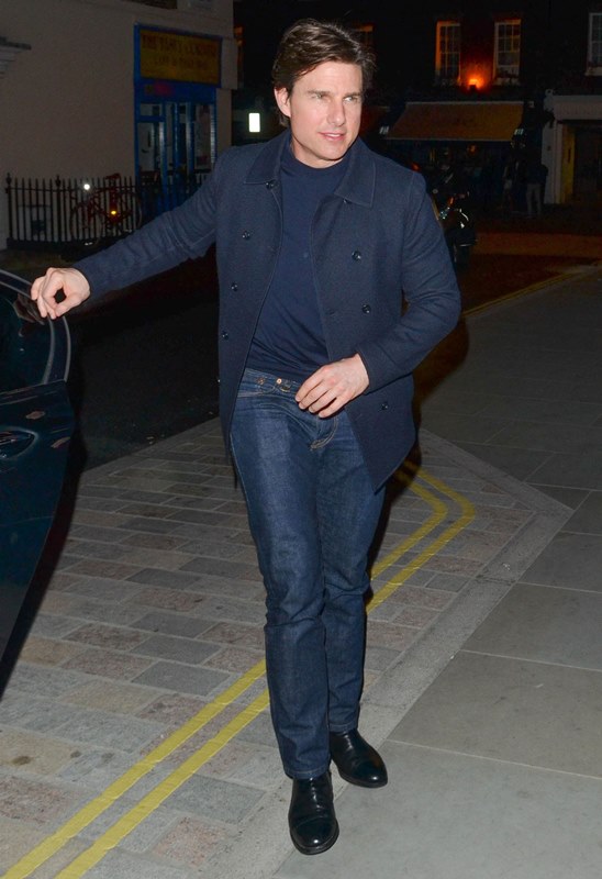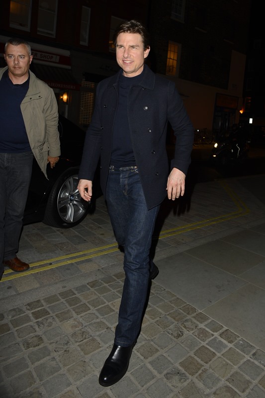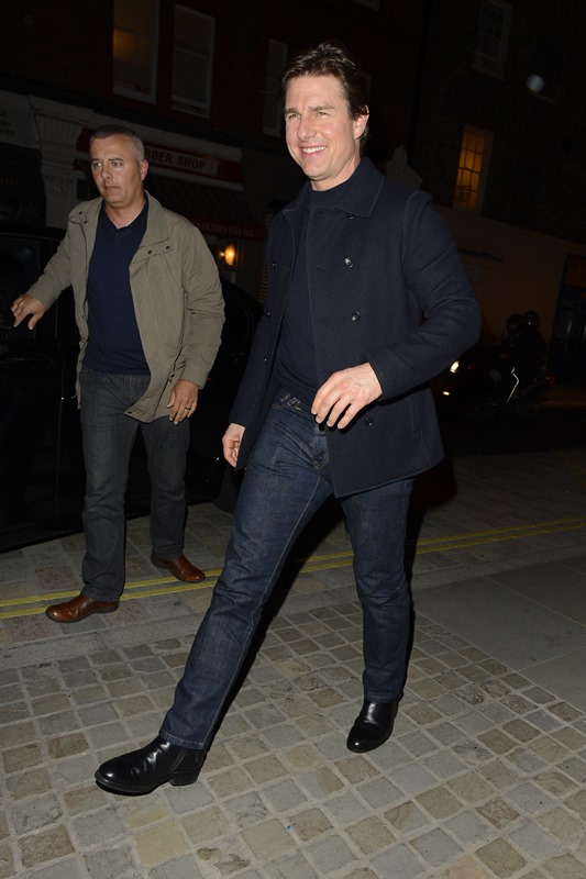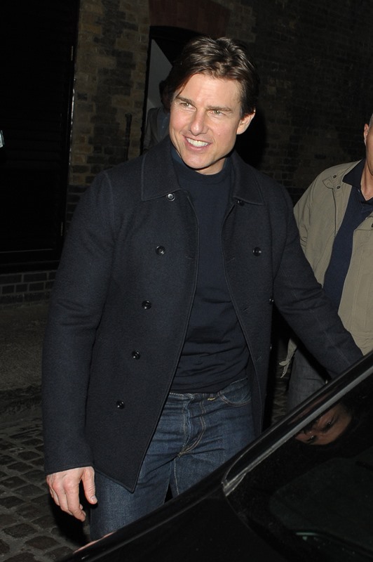 Almost a decade later he looks weird in his jeans and is single again, having spent nearly two years without a (public) girlfriend. Two years. Wise, I think. Wise too to be so out of the spotlight for a while. Even Tom Cruise can disappear, see? He has disappeared himself for months. And for the next couple of weeks he’ll be right back up in your face for his movie. Have you stopped caring? Look at the blonde who’s grinning at him. He can still keep some people entertained. But is it enough?
