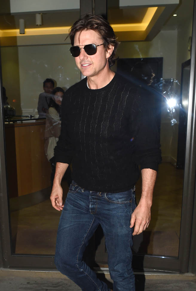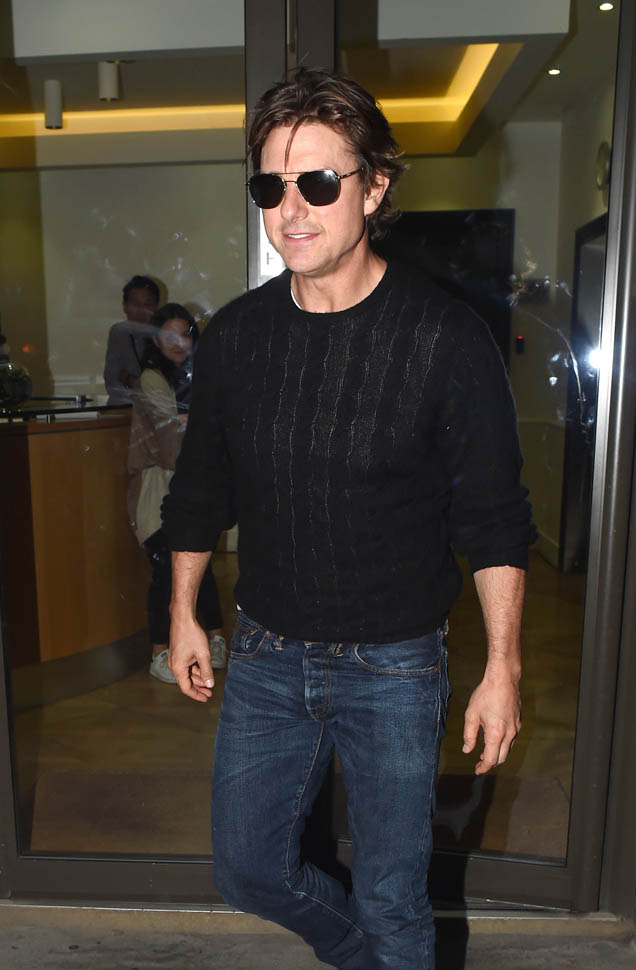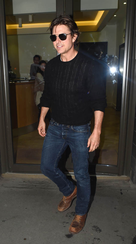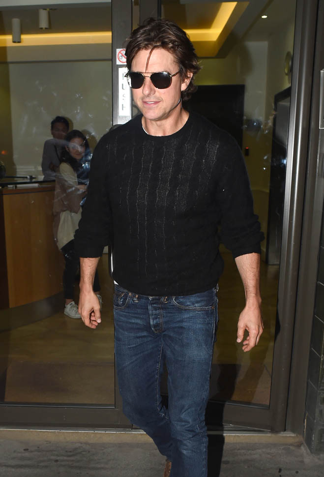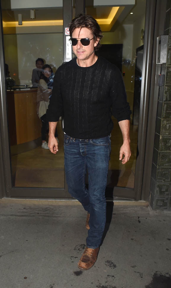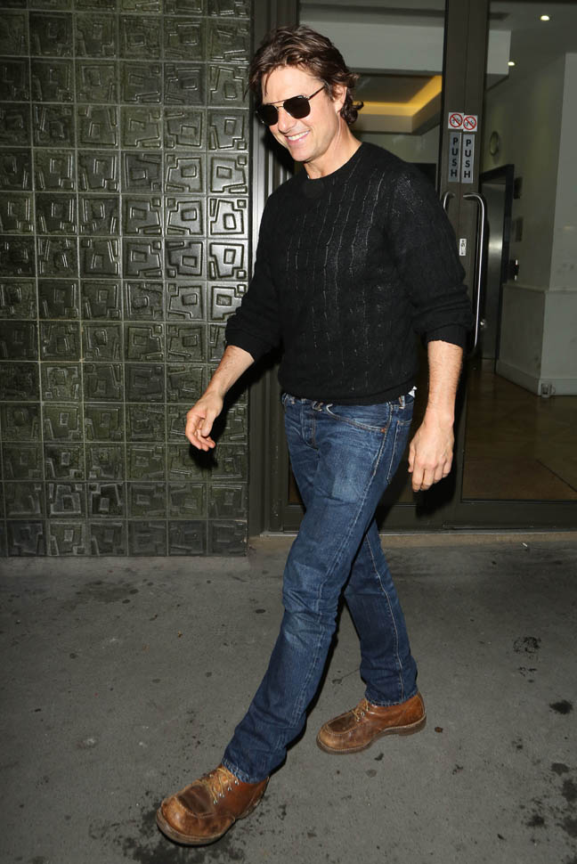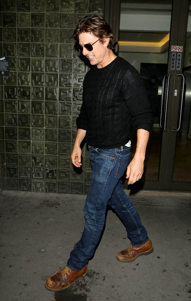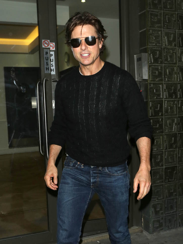Check out Tom Cruise in London yesterday. I wonder if that’s home for him now. He’d been shooting Mena in Georgia for a few weeks but London’s been homebase for a while, for several of his last few movies. The next movie, as you know, is opening very soon. Two weeks until Mission: Impossible Rogue Nation. I saw the trailer last week before Magic Mike XXL on a big screen. Come on. Admit it. For what it is, and we’re not calling it Birdman, it looks good. The plane scene is crazy. And, yes, it’s crazy because it’s actually him, Tom Cruise, hanging off the side of the plane during takeoff. Like, a real takeoff. And, you know, just to be clear, you can’t fake a plane taking off either. It can only come off the ground when it reaches a certain speed. There’s no asterisk to this sentence: Tom Cruise was on the outside of the plane, clinging to the door. ON THE OUTSIDE OF THE PLANE!!! I have anxiety just thinking about this. So of course they just released a featurette to show how that scene happened.