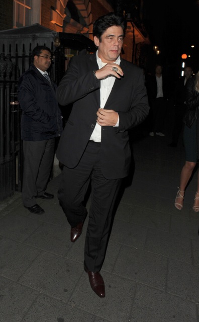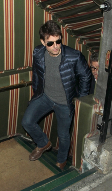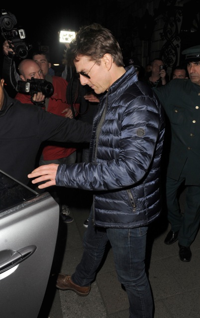 For the second night in London Tom Cruise was photographed on the club scene. Here he is leaving Annabel’s, a private members establishment. Benicio del Toro was there too and you know who else? Tara Reid. Not saying they were hanging out together, but it does seem a little off brand for TC to be rolling up to the same place where Tara Reid was likely getting drunk and falling down.