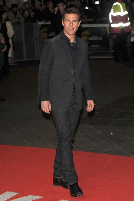 Here’s Tom Cruise at the London premiere of Jack Reacher last night wearing a lot of blush and bronzer. Contouring makes all the difference, you know?