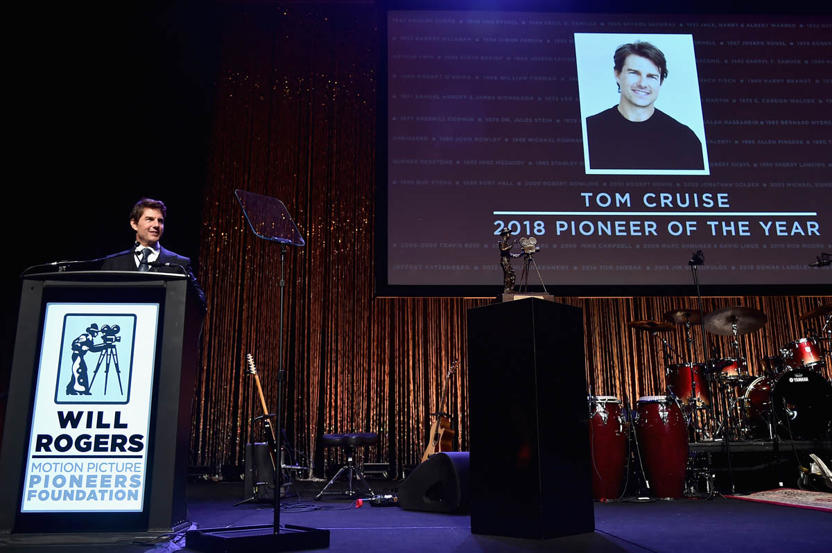 Yesterday was the Paramount presentation at CinemaCon in Vegas. Paramount needs a turnaround because they don’t have much, yet, to compete with the other studios. They do, however, have the Mission: Impossible franchise. And the new M:I is coming out this summer. So Tom Cruise was there to jack up the theatre owners and, last night, he received the Pioneer of the Year Award from the convention. He’s the first actor to receive the honour, perhaps because Tom Cruise is the movie star most committed to movies in movie theatres.