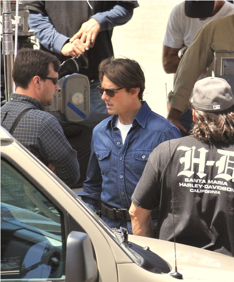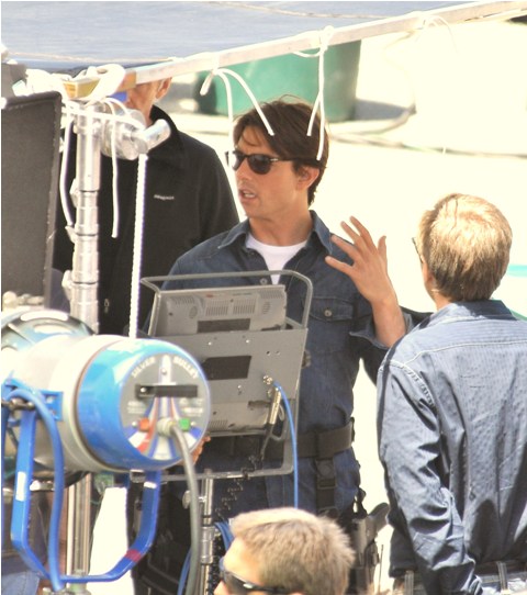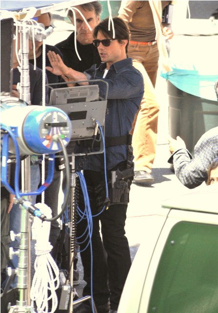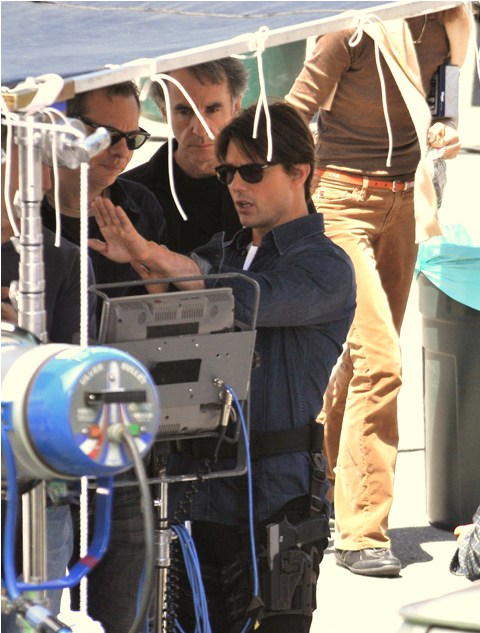 Doesn’t he look it? Stealthy Tom Cruise was photographed yesterday in Long Beach on the set of Knight & Day. It’s been weeks, maybe longer, since we last saw him. Always the wife, always the Little Sci, but very infrequently the GMD. He has many secret missions. And he has the resources and the inclination to keep his movements undercover.