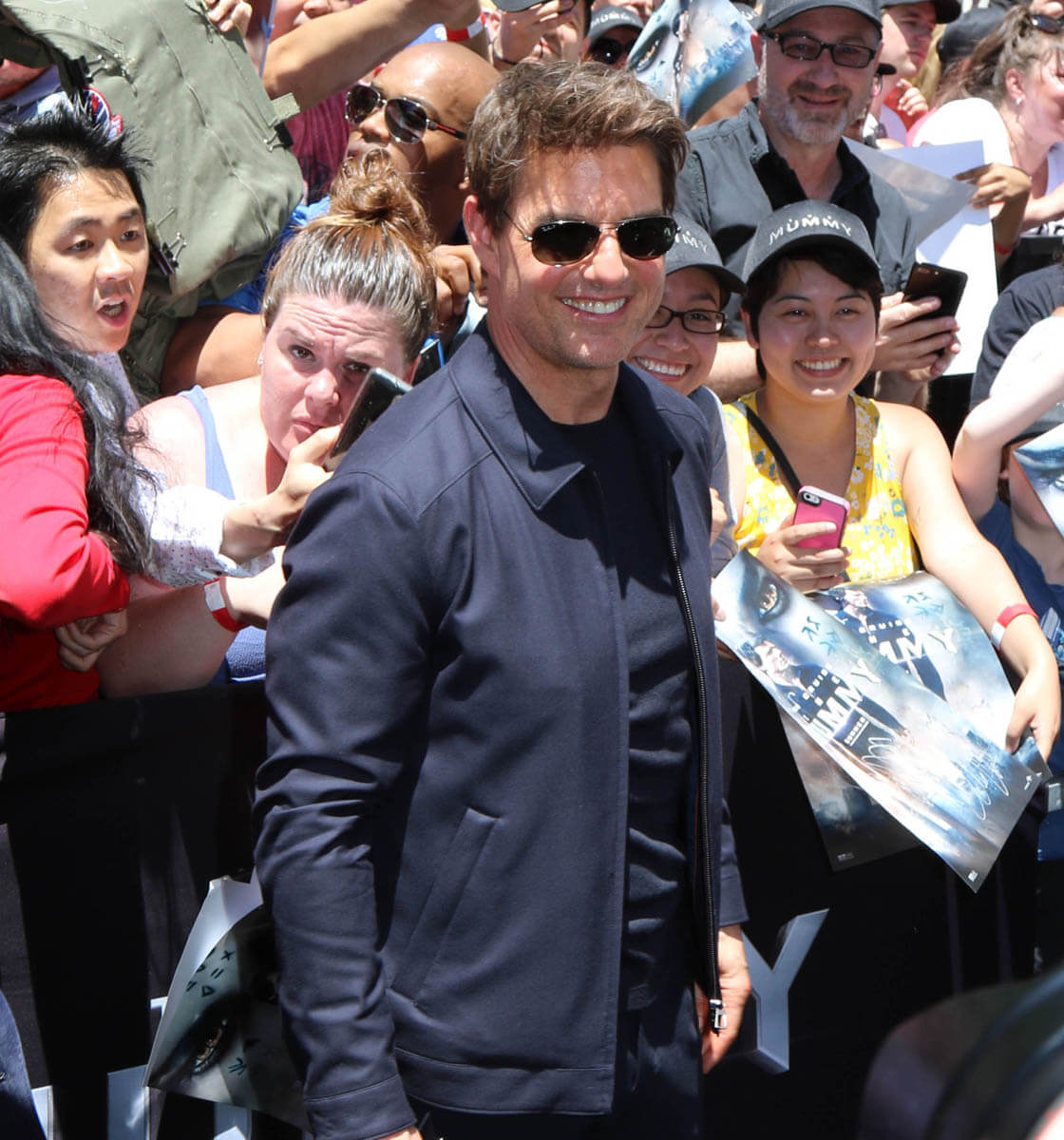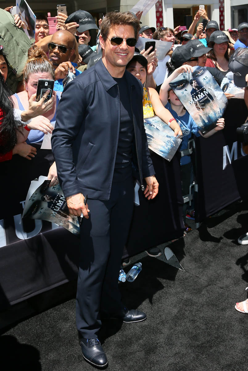 Here he is on Saturday in Hollywood at The Mummy Day takeover as a 75 foot sarcophagus has been mounted at Hollywood & Highland. Today he’s in Sydney for the Australian premiere. We’ll come back to that in a minute. Right now I want to talk about what this Tom Cruise press tour will look like. We’ve seen it from a few of the bigs lately. Brad Pitt’s making matcha lattes for GQ. Johnny Depp is entertaining theme park visitors at Disneyland. Will it be the same old whirlwind travel schedule from Tom? And pies in the face with Jimmy Fallon? Or will we get an interview in Parade (Parade is generally pretty safe and celebrity-friendly) or even a sitdown with Jess Cagle for PEOPLE? It’s been a while since Tom Cruise has been featured in a lengthy celebrity profile. I would love to see him show up in Vulture but I can’t see that happening.