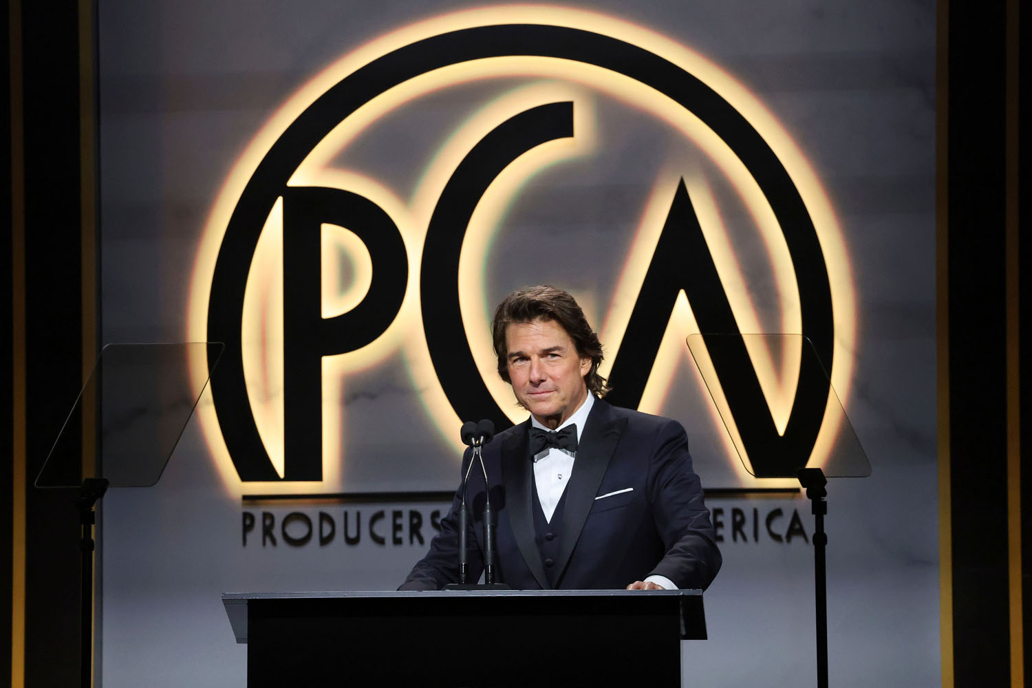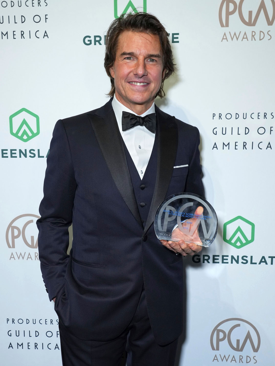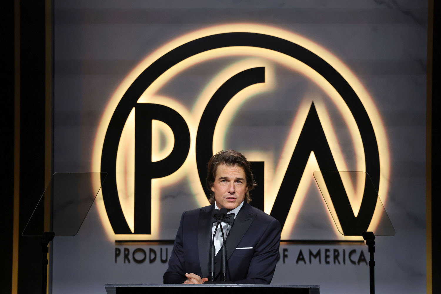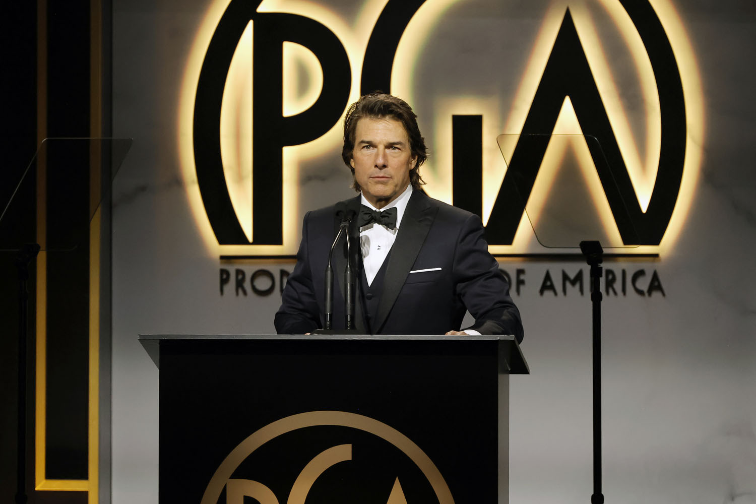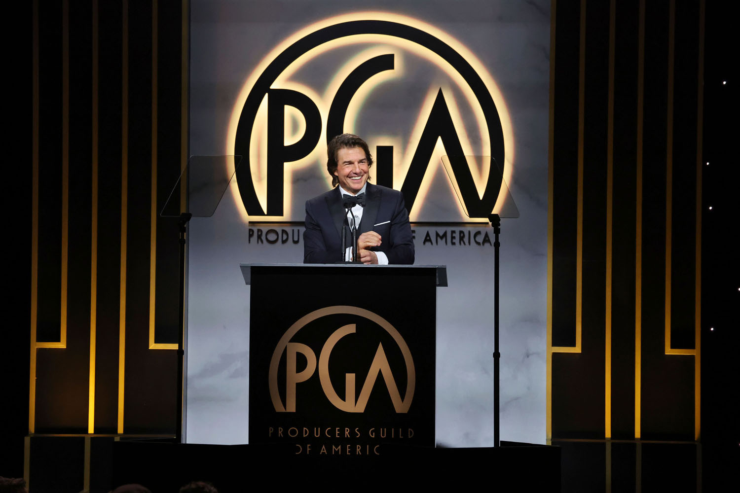 Tom Cruise was celebrated in Hollywood on Saturday night at the Producers Guild of America awards, where he was presented the career achievement David O Selznick Award. Top Gun: Maverick was also nominated for Best Picture. Everything Everywhere All At Once took the prize, which is a solid bellwether for Oscar, although some industry analysts are wondering whether or not the early announcement that Tom would receive the Selznick may have made it easier for PGA voters to go with EEAAO because they knew that Tom would be there with an award anyway. So as Sarah noted earlier in her post about EEAAO at the SAG awards, the Best Picture Oscar is far from locked. This is still a tight race.