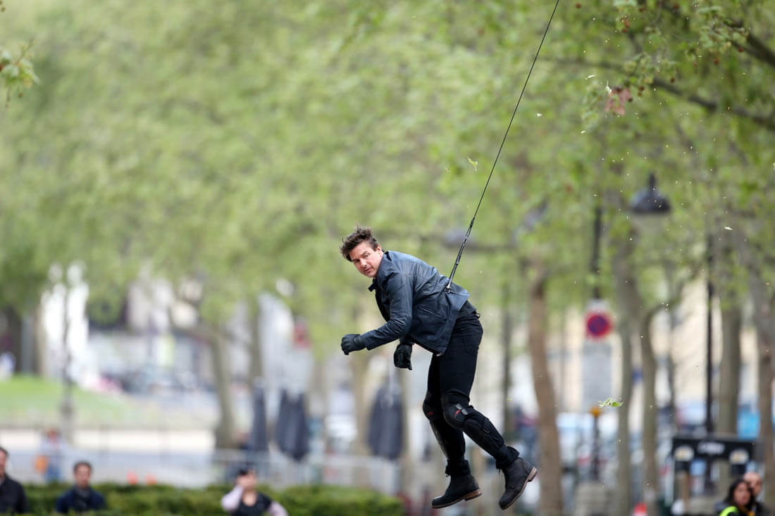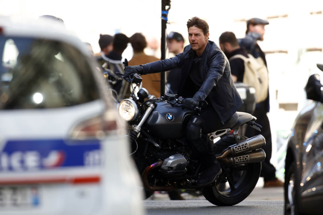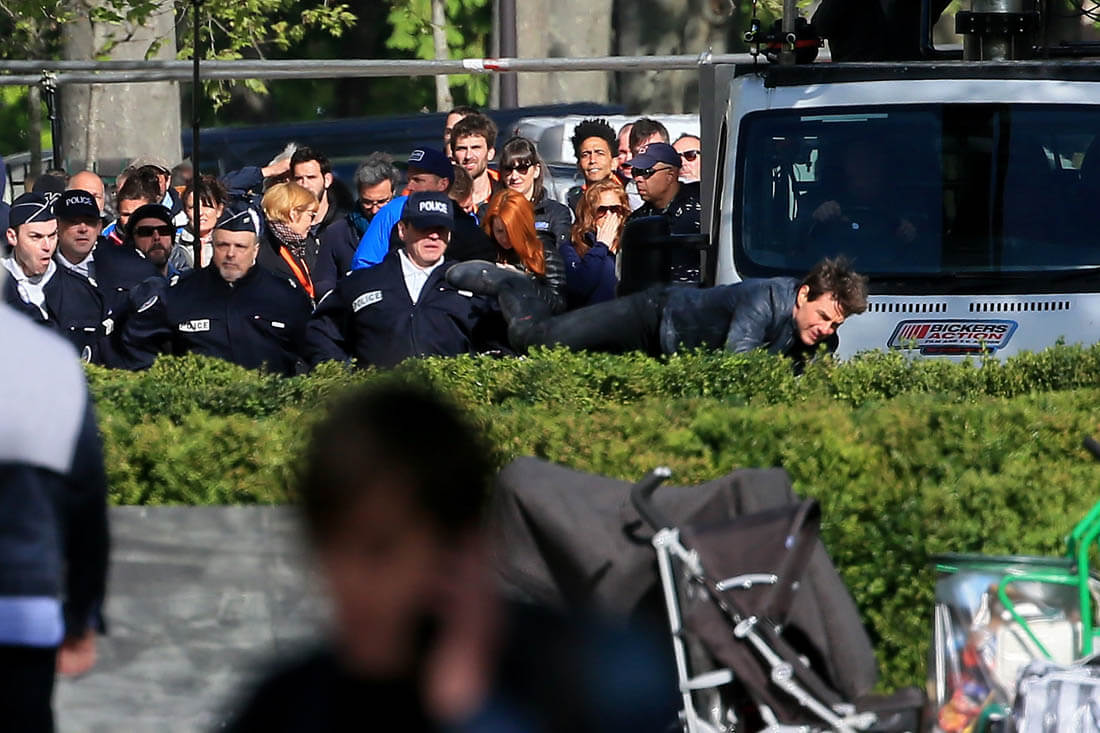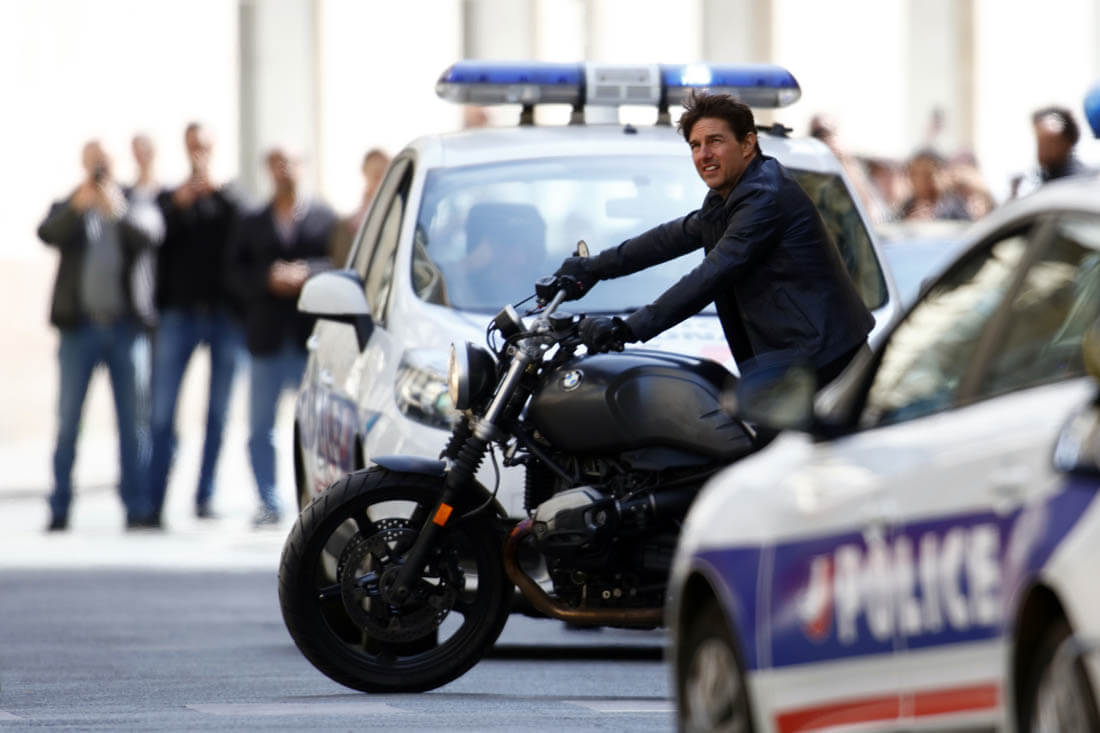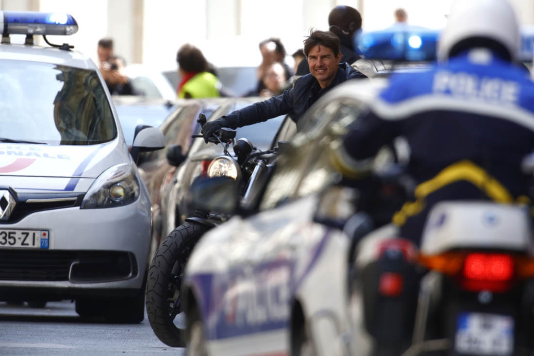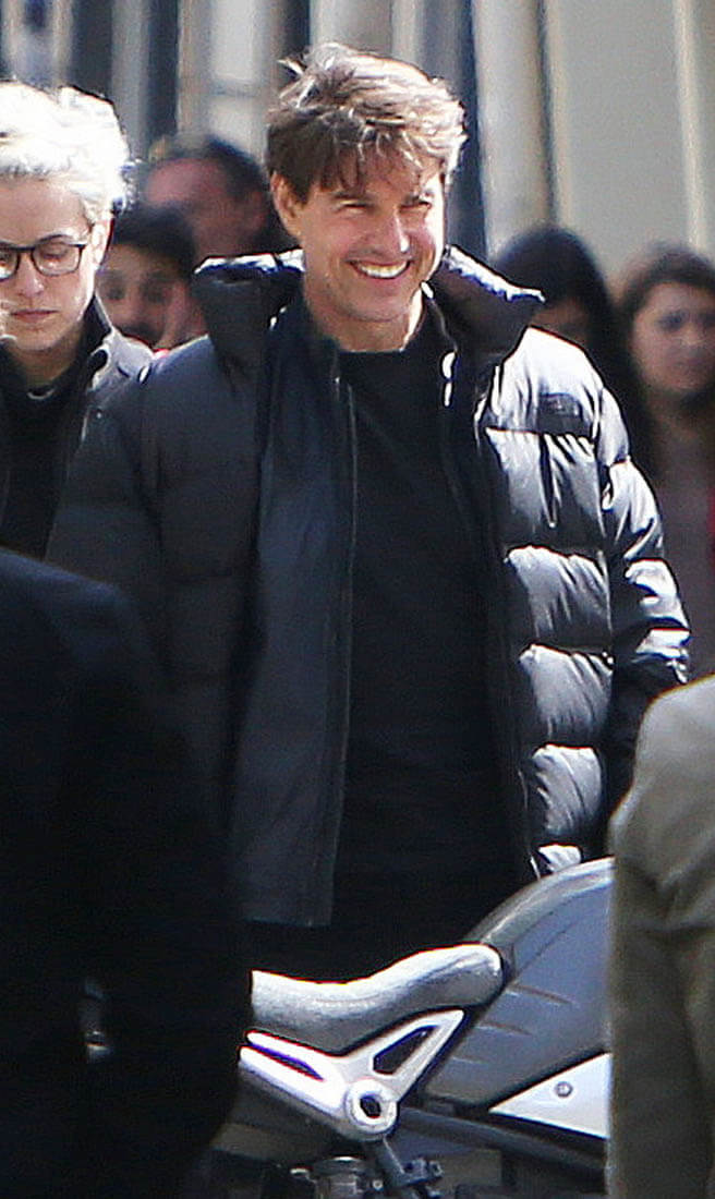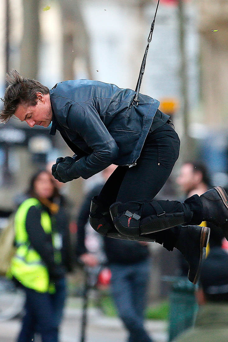 Yesterday Tom Cruise did both in Paris – rode a motorcycle and got harnessed for some kind of stunt – on the set of Mission: Impossible 6. It’s the Tom Cruise Total Package – speed, intensity, and he does it all himself! The ultimate action star!