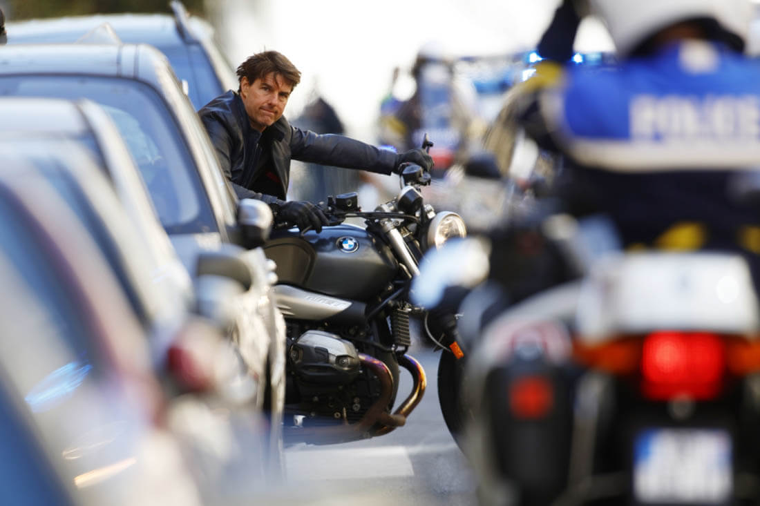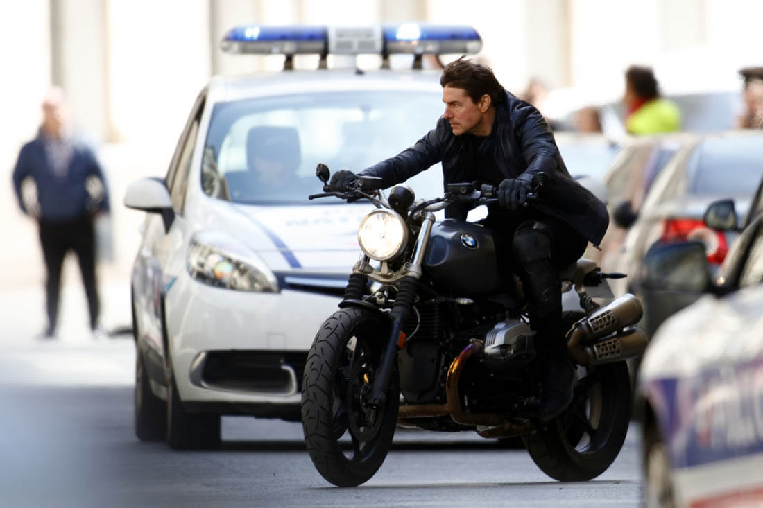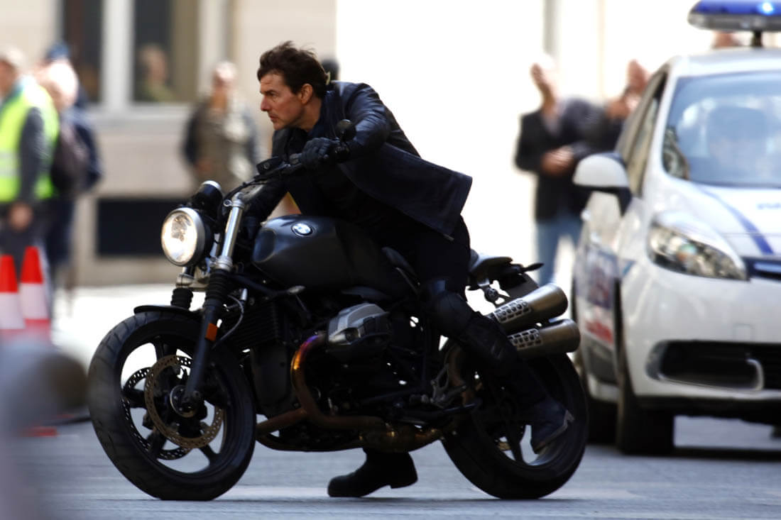 What’s more Tom Cruise than Tom Cruise on a motorcycle? Highway to the danger zone. Tom Cruise on a motorcycle was introduced to us over 20 years ago in Top Gun. At this point, yes, it’s fair to call that an iconic image. And he won’t let us forget it because every movie he tries to get himself onto a motorcycle to show us how good he looks on a motorcycle.
