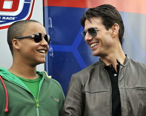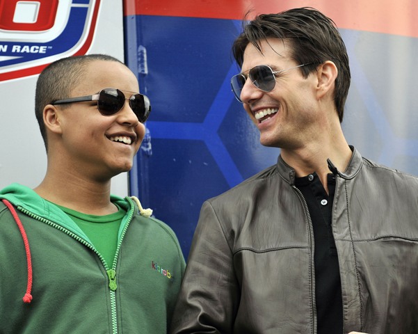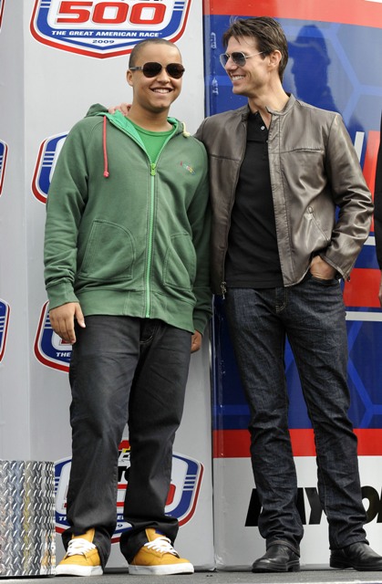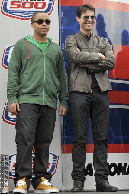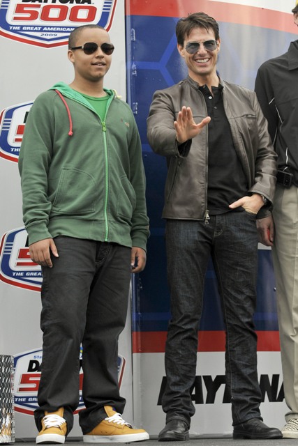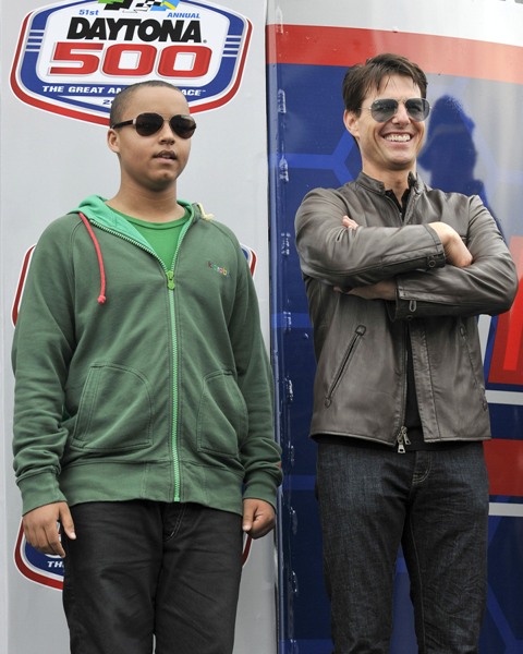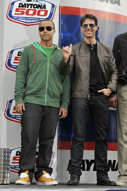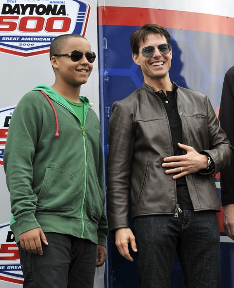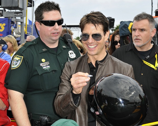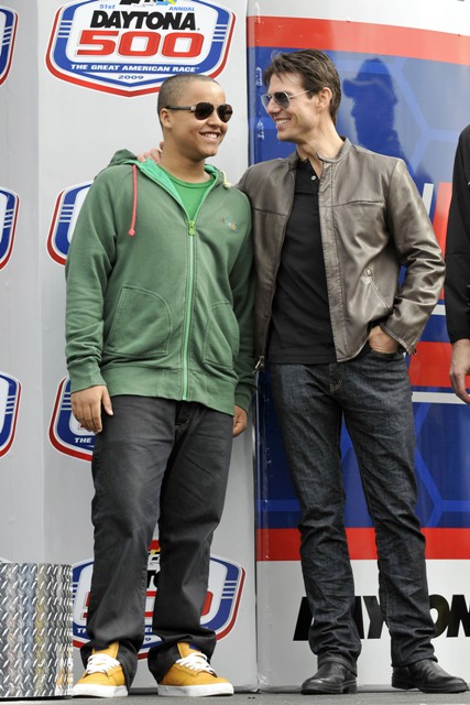 As reported last week, Tom Cruise drove the pace car at the start of the Daytona 500 yesterday and Keith Urban performed during the pre-race festivities. Both wives however were missing. Granny Freeze Nicole Kidman did not appear to be in attendance and Katie Holmes spent the day at Disneyworld with Little Sci instead. So the men were all civil with each other, shaking hands and acting like grownups. Boo.