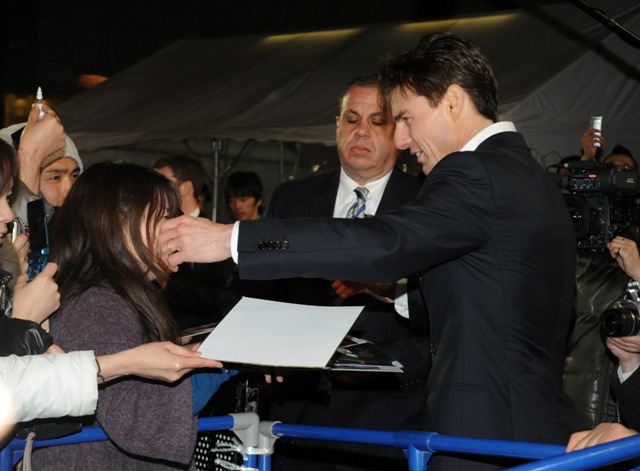 Valkyrie premiere in Tokyo –Tom Cruise looking sharp in a well cut suit giving the Hello Kitties something to live for. Check out the trademark jaw clench taken in profile. Someone wrote to me the other day that he’s starting to resemble SnapFace Renee Zellweger. Totally. But I don’t think Renee goes to Brazil. Brazilian work is usually MUCH better.