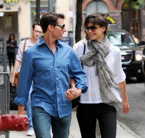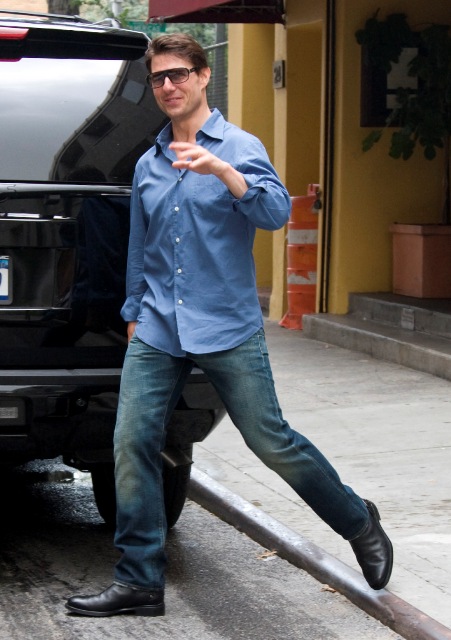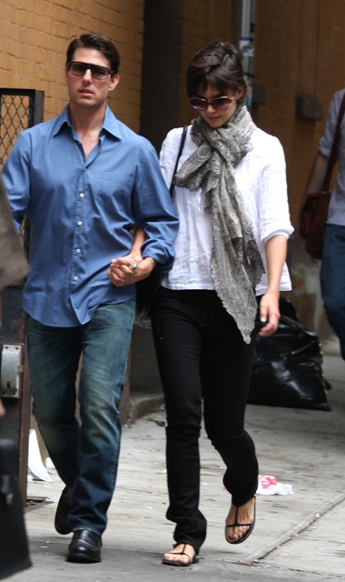 Check out Tom Cruise, now in NYC, chivalrously dropping off his RoboBride, walking her ten steps from the car to the door.
