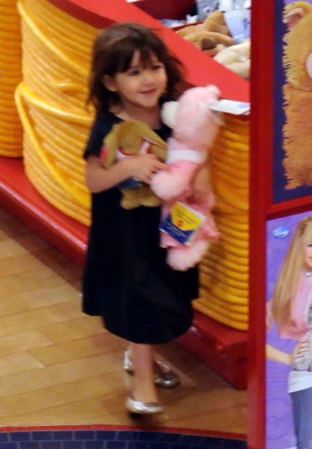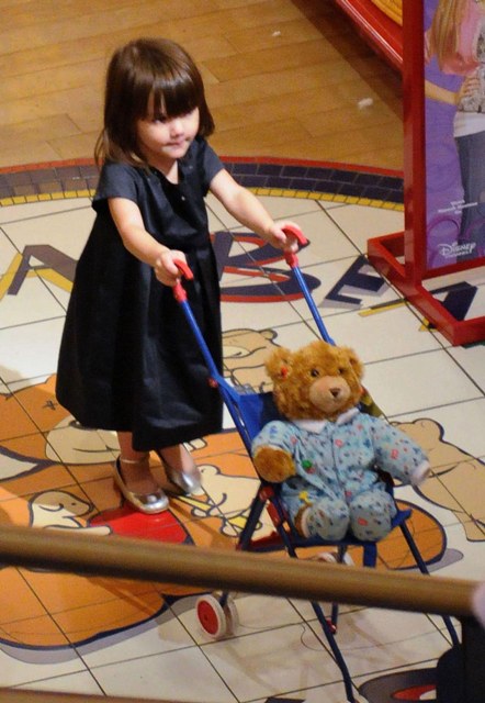 The black shirt and jeans combination worked much better the next day, shopping with Little Sci at the Build a Bear Workshop. As you can see, Little Sci had her run of the place, happily pushing her new friends around in a stroller, milking daddy for several new toys.