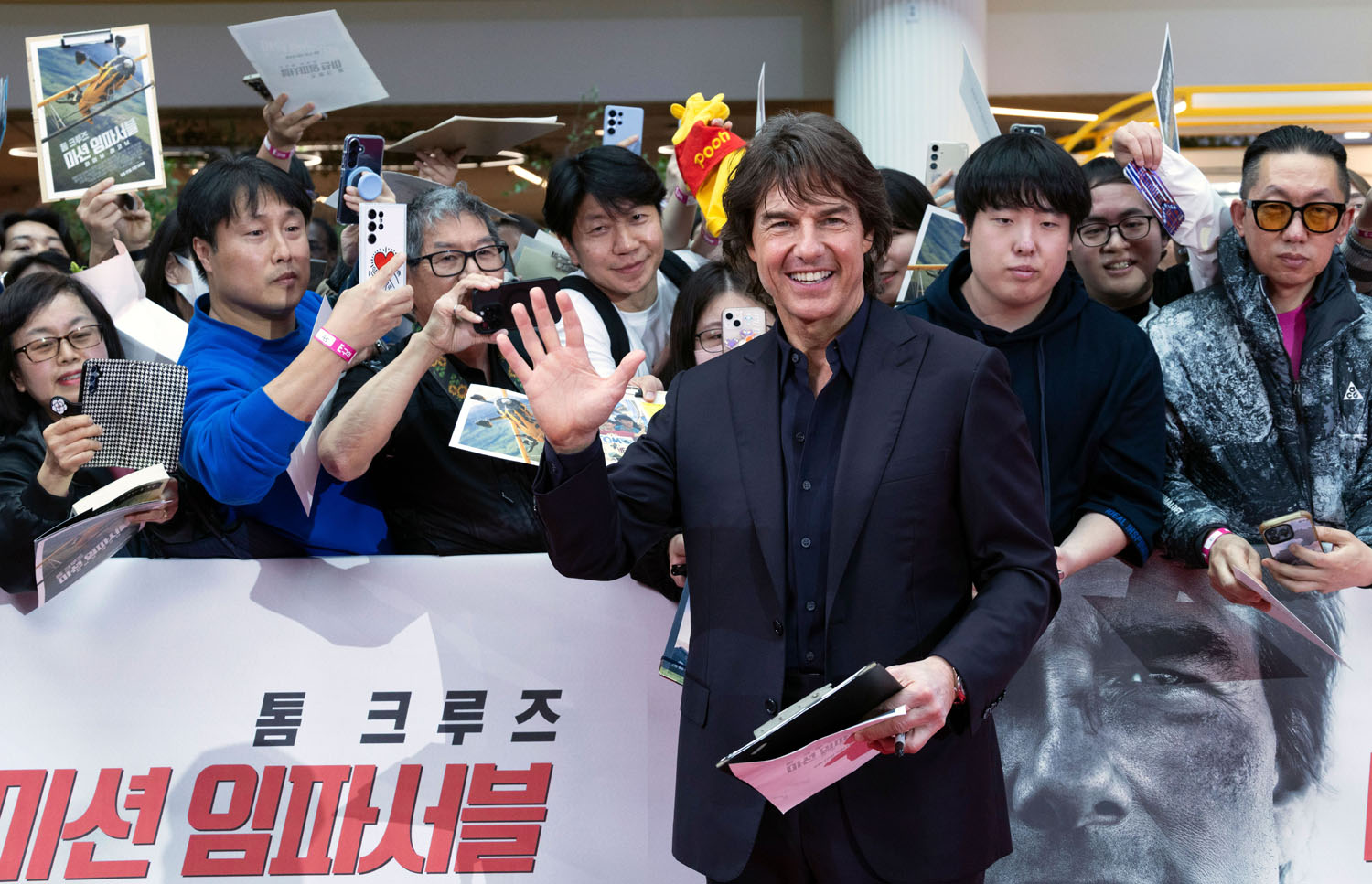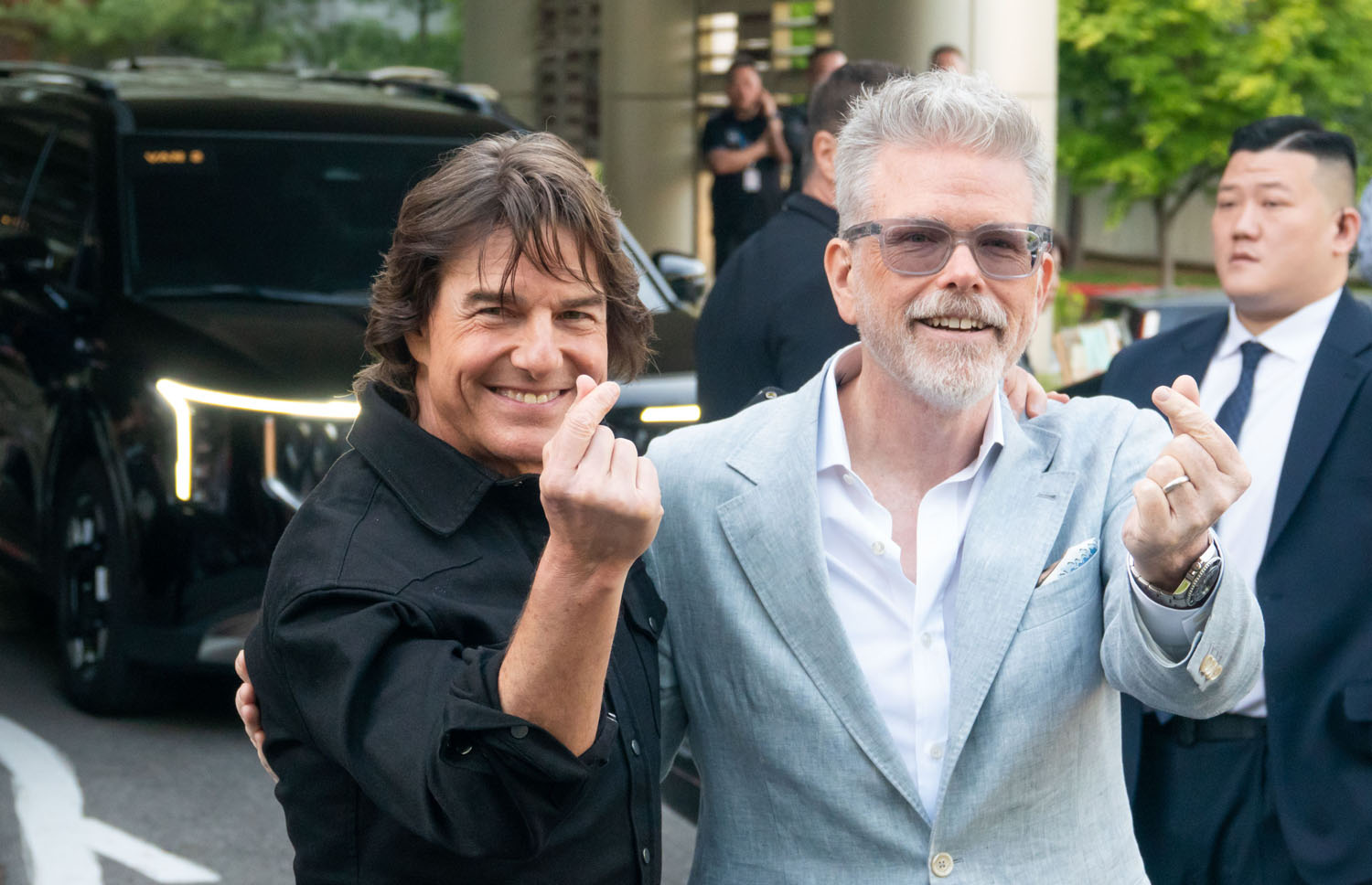 Anyway, here’s Tom and the M:I team in Seoul yesterday for the presser and the premiere where, as you can see, he and the other actors were throwing out finger hearts all over the place, as one does when they’re in Korea.