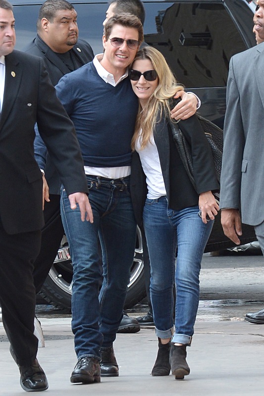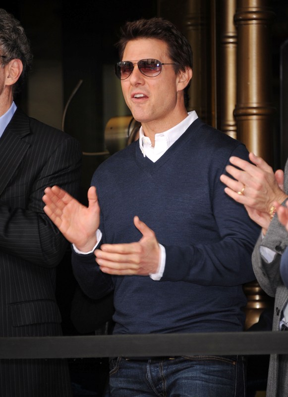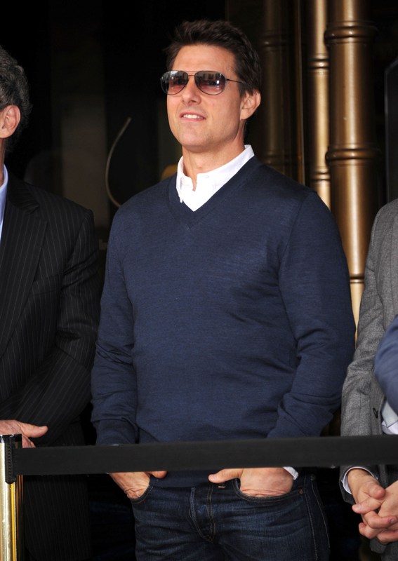 Tom Cruise showed up for Jerry Bruckheimer's Walk Of Fame star ceremony today. He had his arm around a "mystery blonde". So the photographers just didn't have an identity and didn't feel like waiting to find out before sending out these images. Ok.