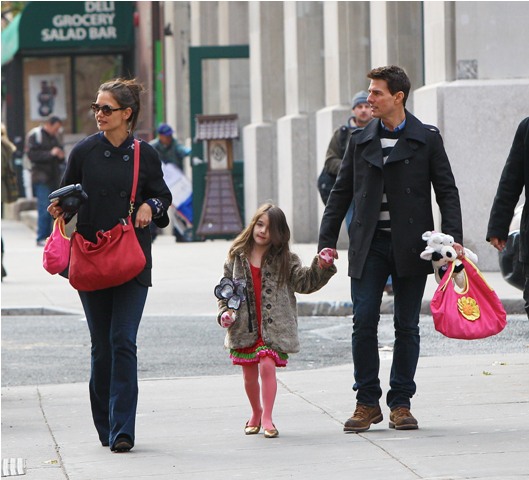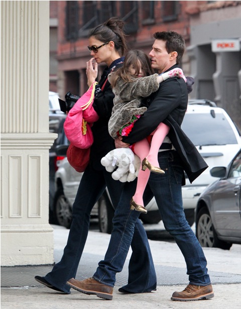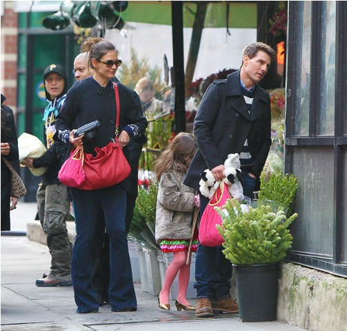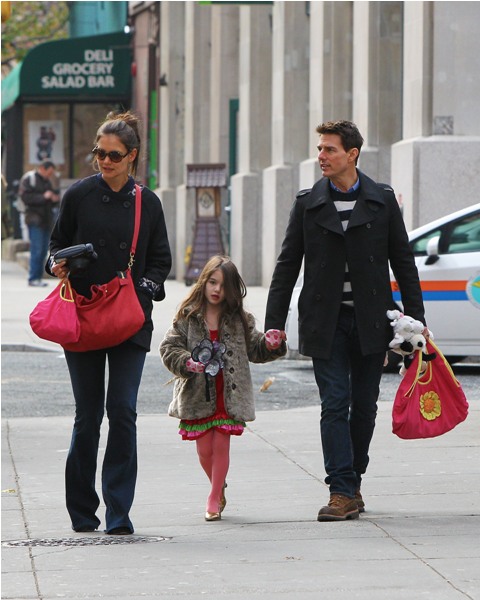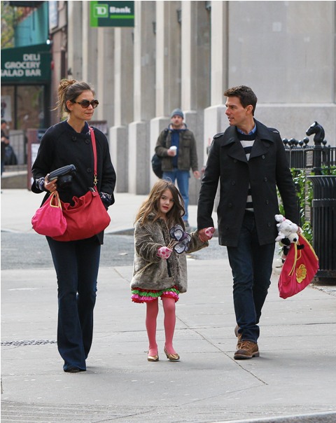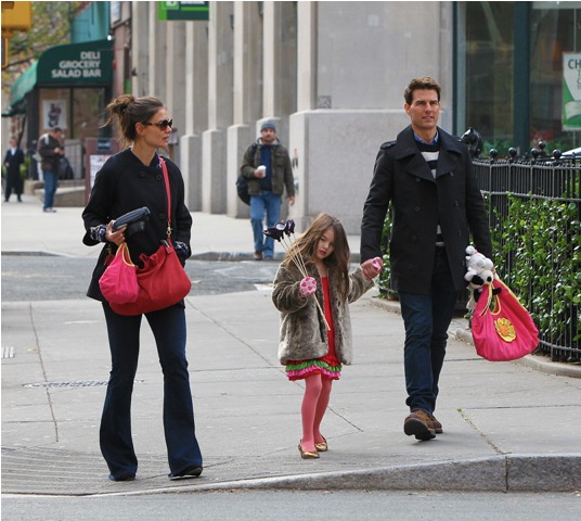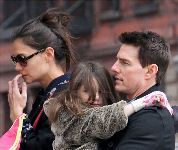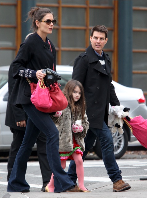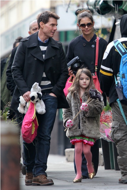 Tom Cruise is back in New York, seen here today with Katie Holmes and Little Sci, pushing through some last minute photo opportunities before Mission: Impossible Ghost Protocol (God that colon is so f-cking annoying) opens (in limited) tomorrow. See how skilled his security is? They do a great job of avoiding getting in the shot.