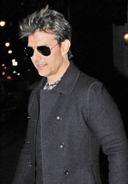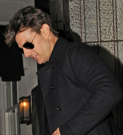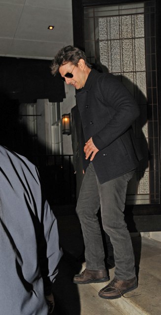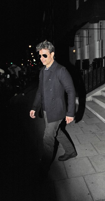 Probably just a friend, especially since she doesn't fit the profile (young, brunette) of the past candidates he's auditioned. Here's Tom Cruise in London last night after dinner with Ridley Scott (not pictured) and some friends. Scott's brother Tony died recently. Tony of course directed Tom in Top Gun.