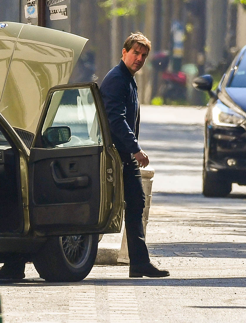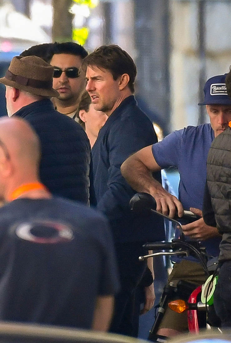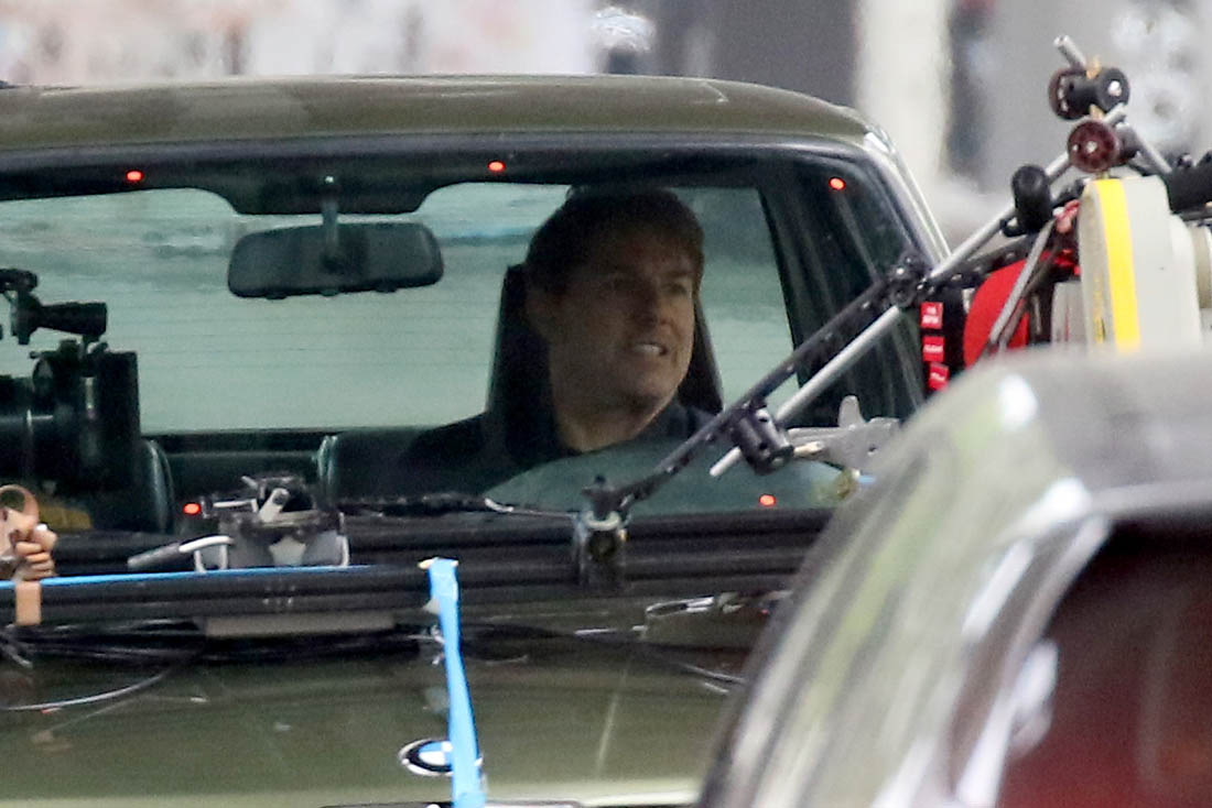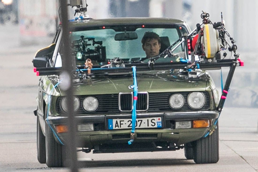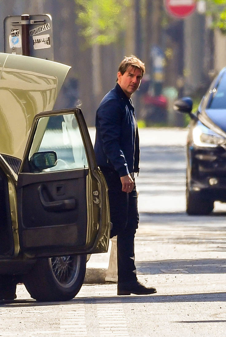 Production is officially underway on Mission: Impossible 6 in Paris. Right now, the working title is “Gemini”. So… are we dealing with twins? Tom Cruise was photographed this weekend on set as they shot a car chase scene with him driving an old BMW. I’m assuming he busted out Sean Harris in the straight jacket and now has to drive really fast to escape whoever it is that’s surely coming after him. This is the perfect opportunity for Tom to put on his famous Intense Face behind the wheel. These shots are pretty low quality but even still, you can see that grimace, you can see that jaw working, and the managed panic in his eyes. It’s the face we’ve watched for 30 years, the face that’s made over a billion dollars at the box office.