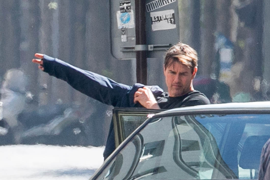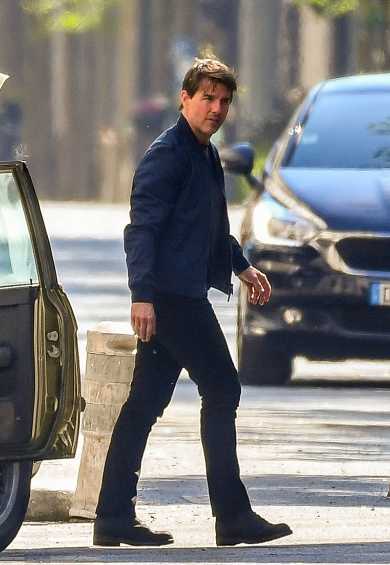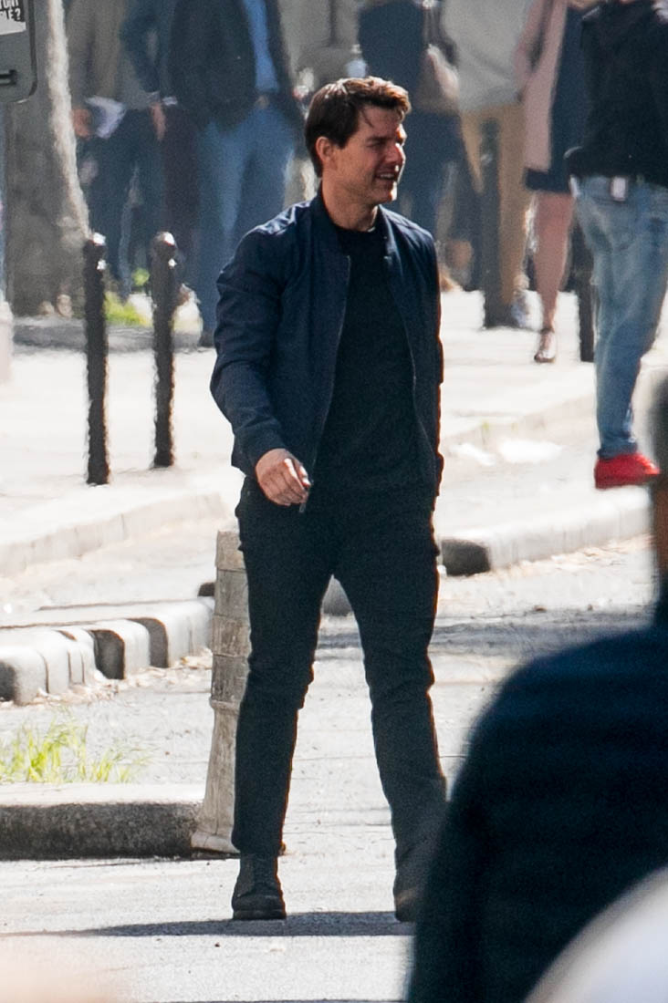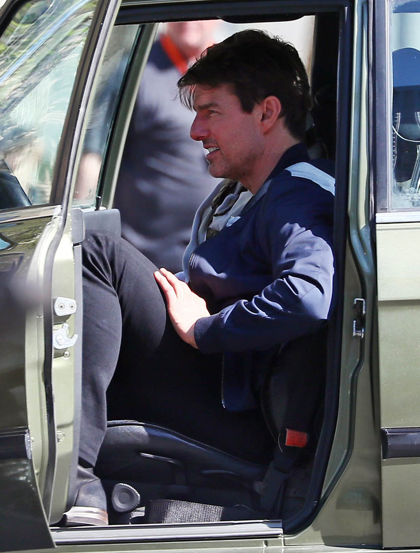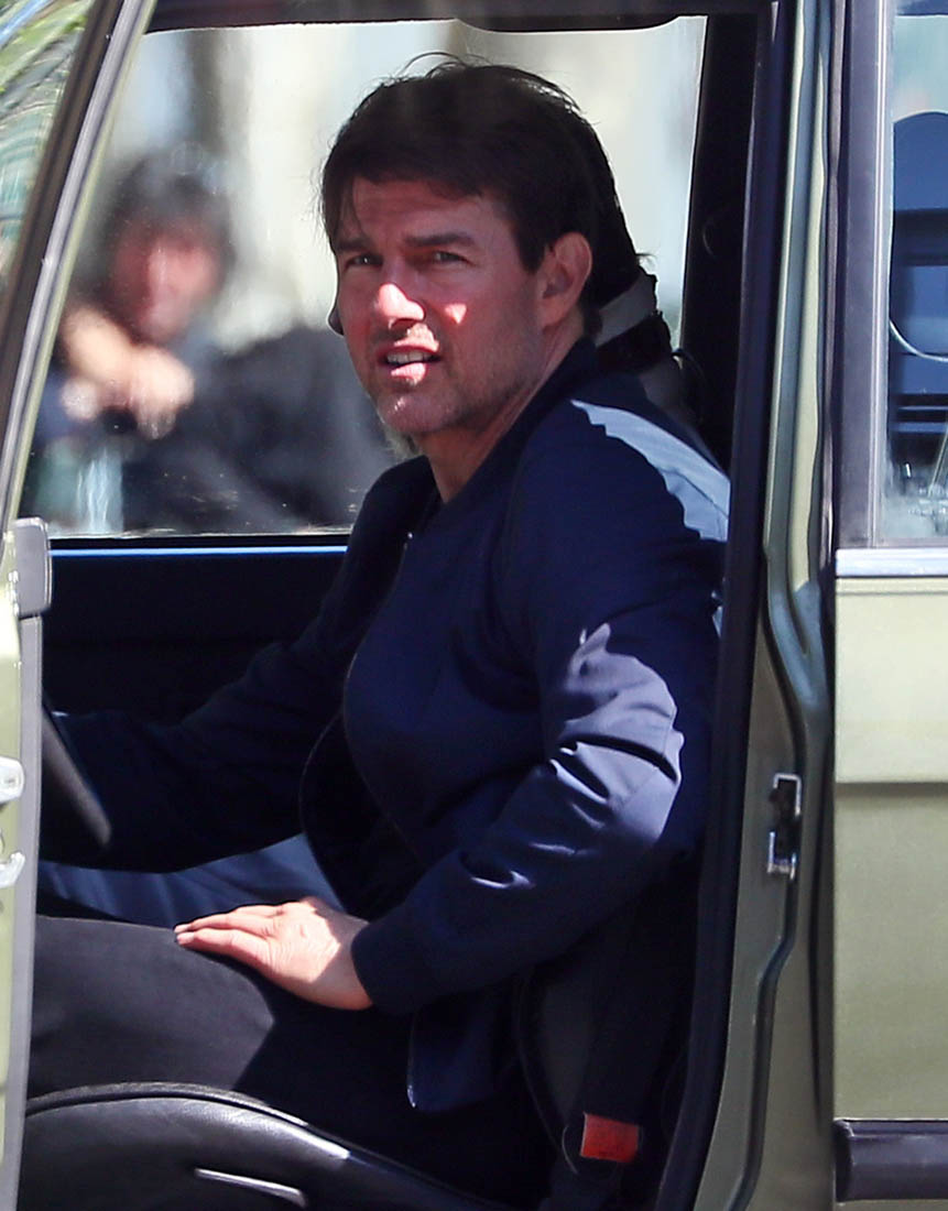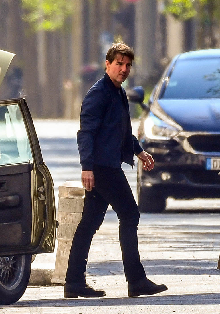 Production is officially underway on Mission: Impossible 6 in Paris. Right now, the working title is “Gemini”. So… are we dealing with twins? Tom Cruise was photographed this weekend on set as they shot a car chase scene with him driving an old BMW. I’m assuming he busted out Sean Harris in the straight jacket and now has to drive really fast to escape whoever it is that’s surely coming after him. This is the perfect opportunity for Tom to put on his famous Intense Face behind the wheel. These shots are pretty low quality but even still, you can see that grimace, you can see that jaw working, and the managed panic in his eyes. It’s the face we’ve watched for 30 years, the face that’s made over a billion dollars at the box office.