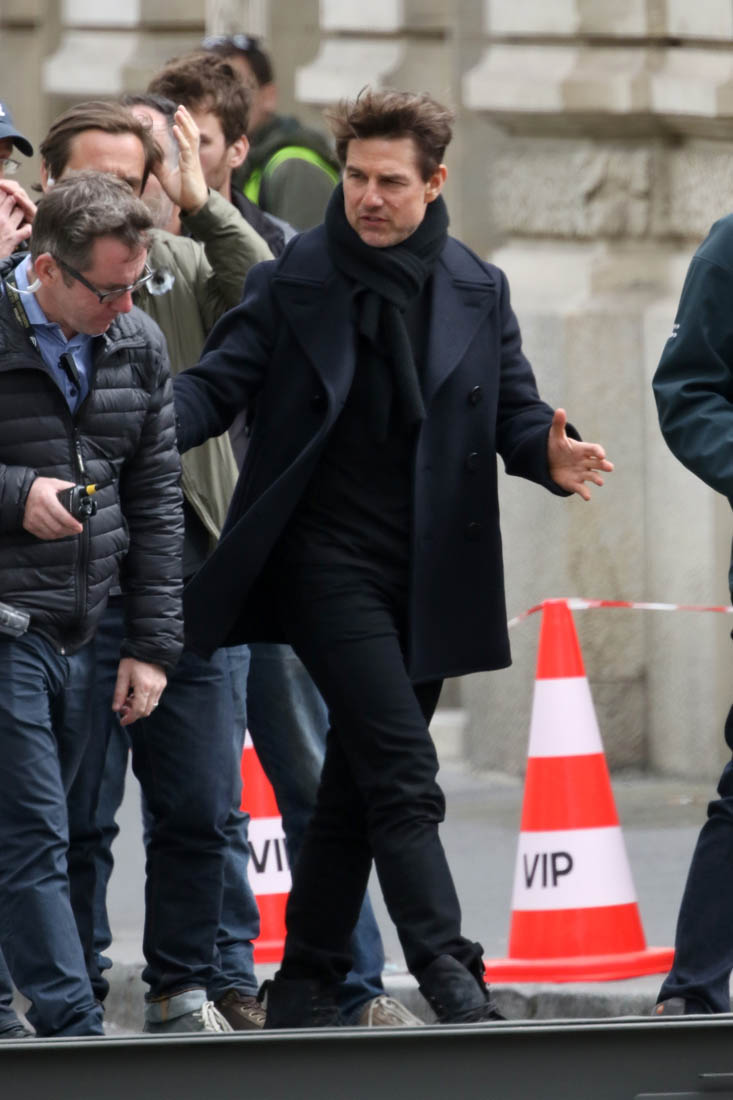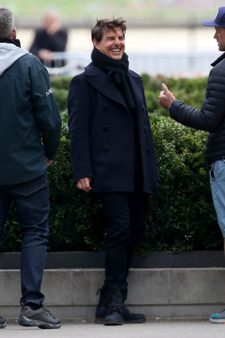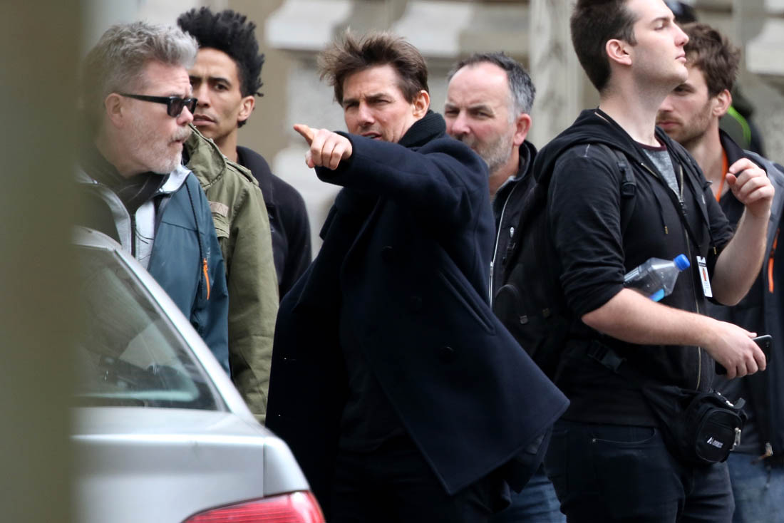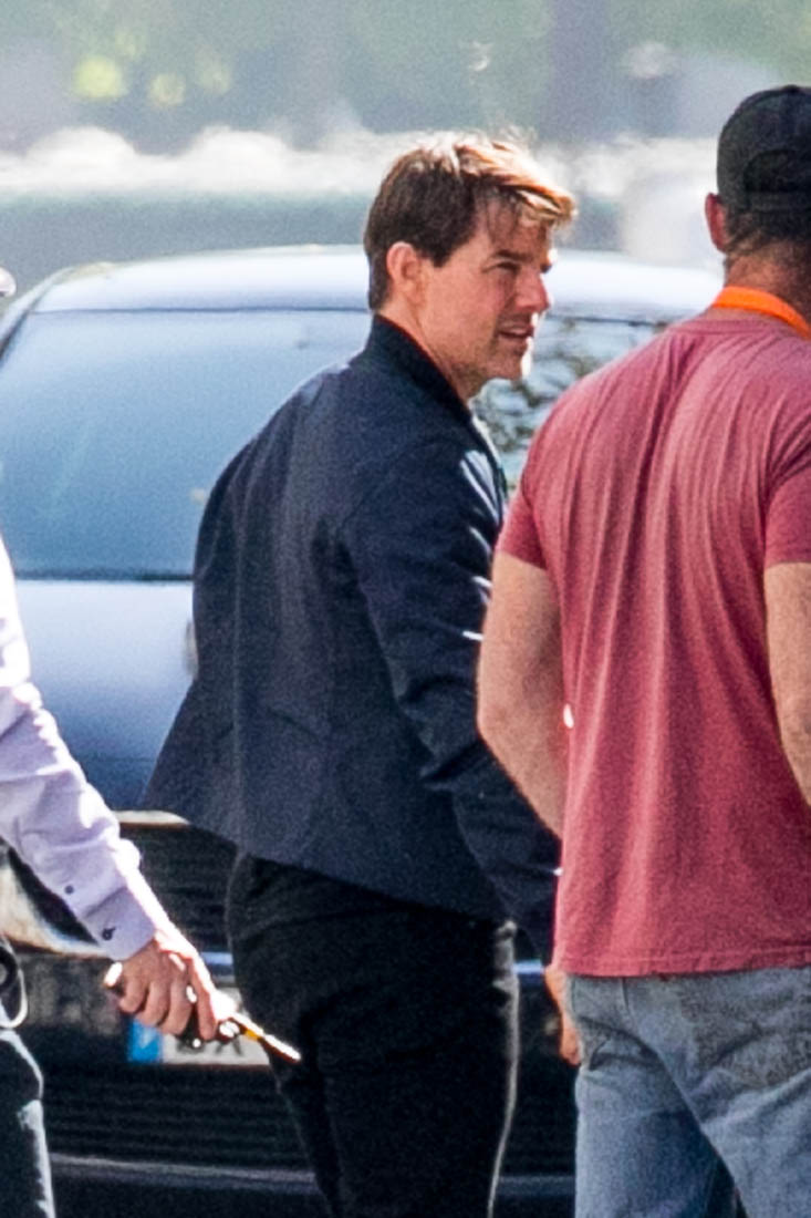 When he’s not making the face though, Tom’s as involved as he’s always been with the other details. He’s conferring with Christopher McQuarrie who also directed Tom in Rogue Nation and Jack Reacher and wrote Tom’s reboot of The Mummy and Edge Of Tomorrow. So there’s history here. It’s a proper partnership. And it worked very, very well on Rogue Nation. The way they’re hyping this movie, it’s going to be BIGGER and Tom will run FASTER and climb HIGHER. And JUMP… where? What else can he jump off of???