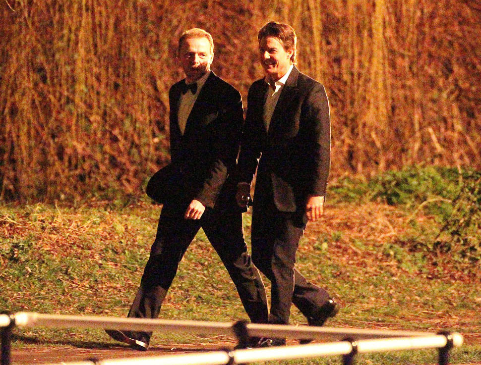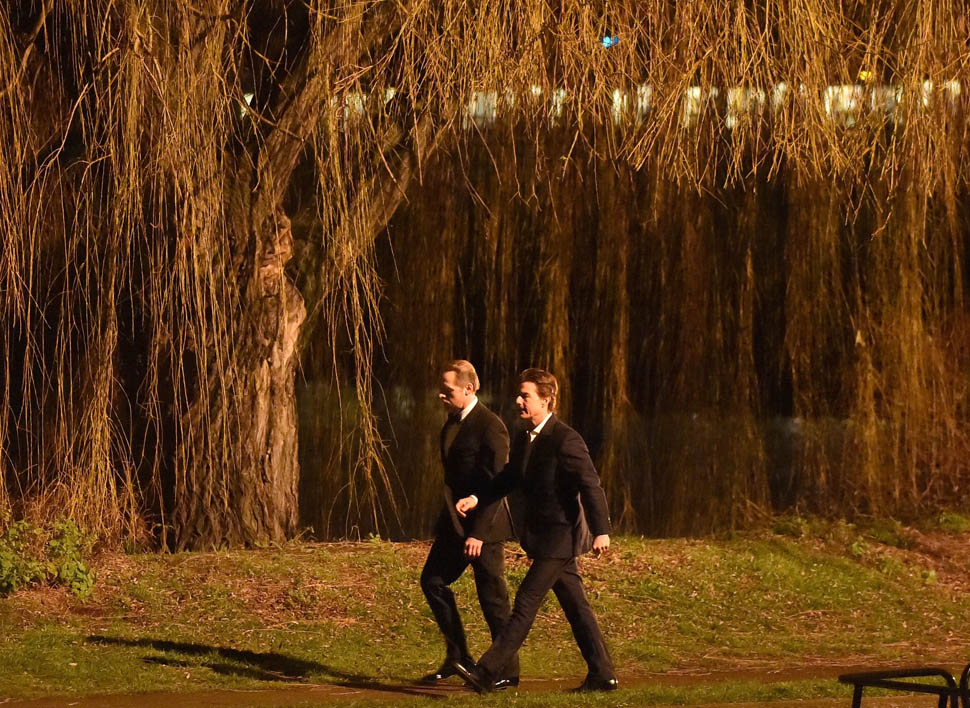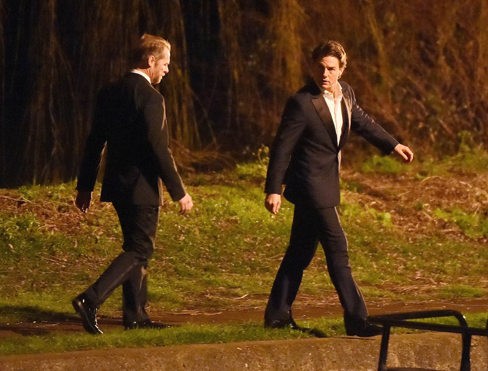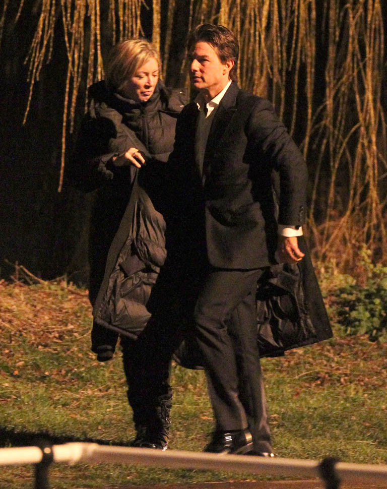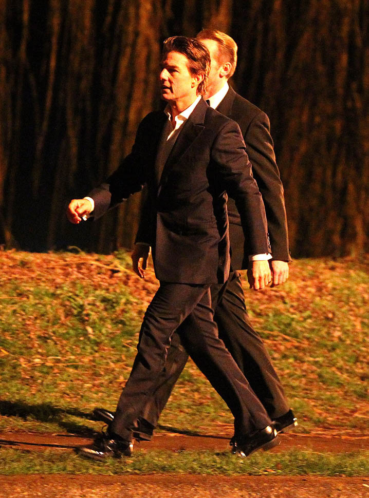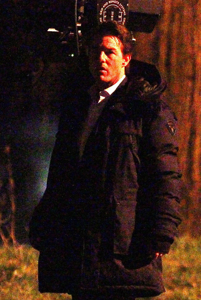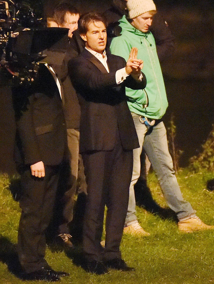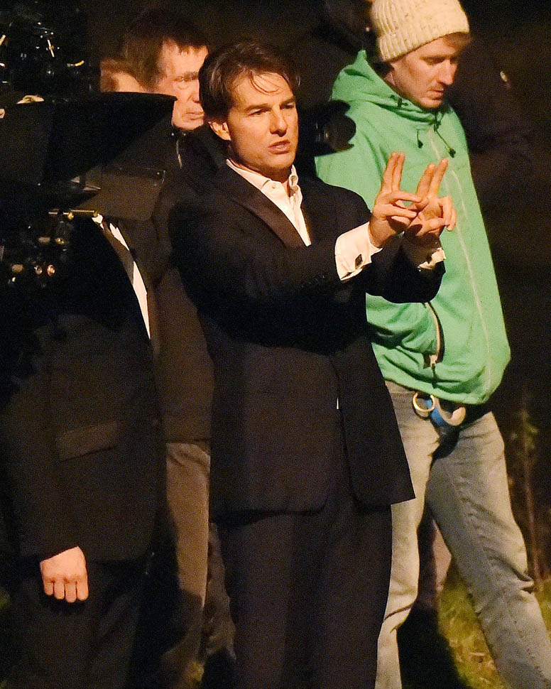 Here’s Tom in London the other day continuing to work on Mission: Impossible 5 with Simon Pegg. Yesterday it was announced that M:I5 will be moved up 5 months to a July 31 release instead of during the holiday 2015 season, likely to get the f-ck out of the way of Star Wars.