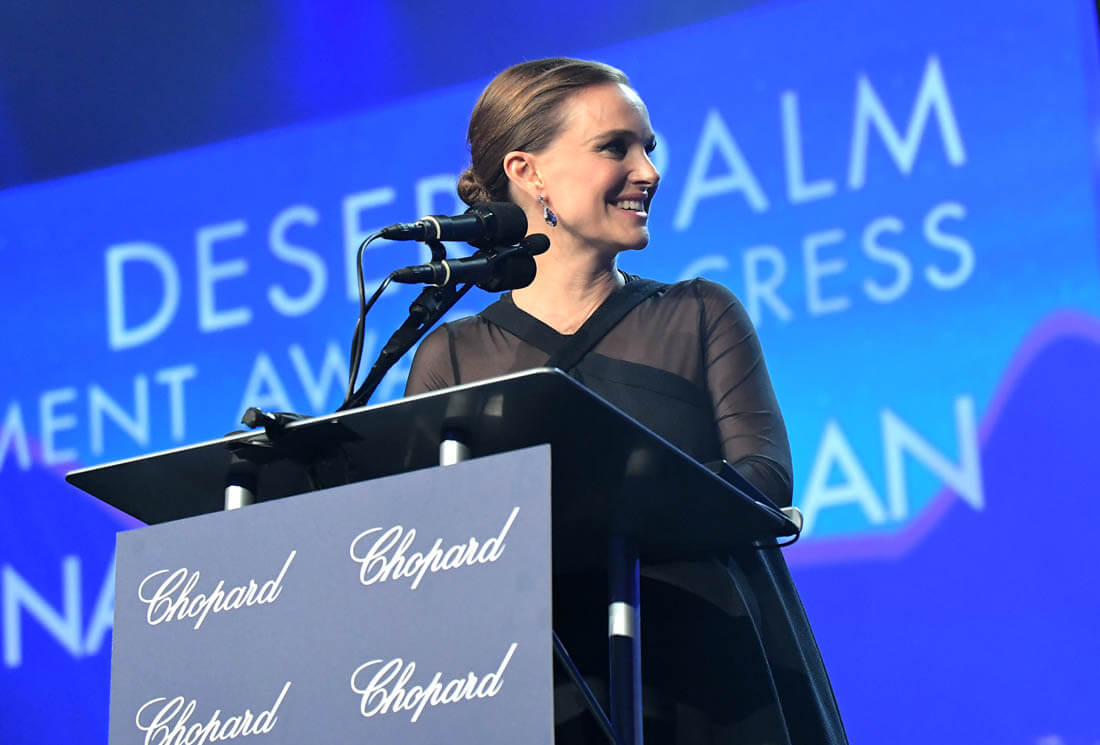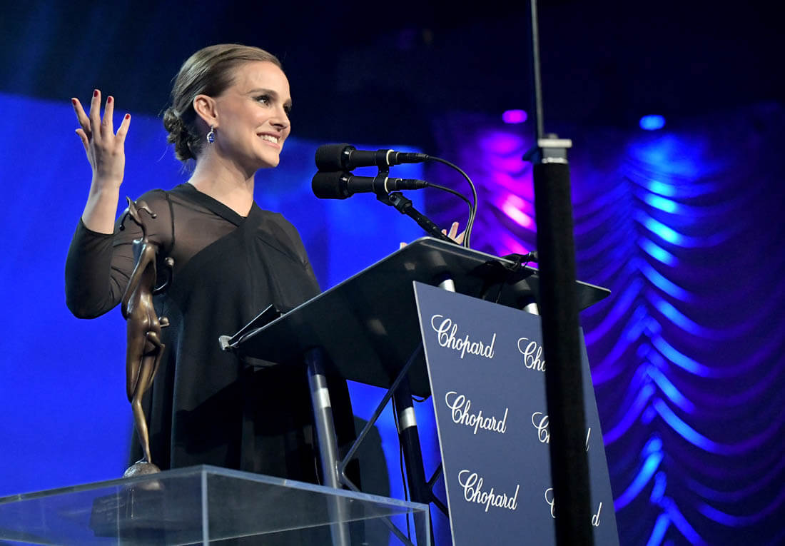…and delivers an introduction for Natalie that does the work of 15 screenings and Q&As and red carpet appearances. He calls her “unknowable” but “authentic”, he reminds the audience that she went to Harvard and wrote research papers, he pretty much calls her a genius who isn’t too good for Sesame Street and The Simpsons. It is the most powerful endorsement we’ve seen all season, maybe over the last few seasons. Watch here, starting at 1:49.