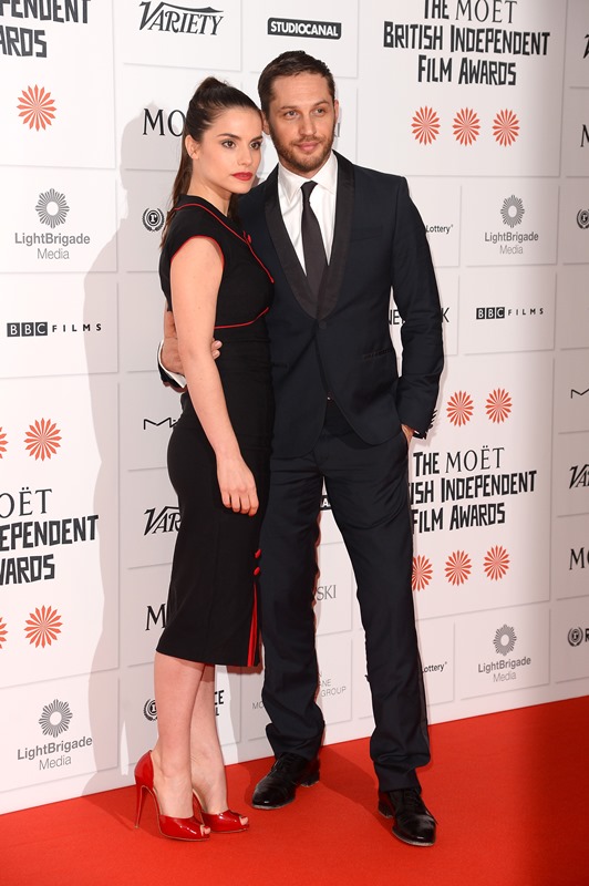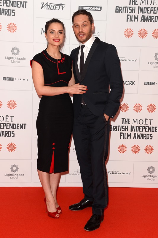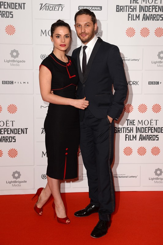 Remember when it was reported that Tom Hardy and Charlotte Riley weren't engaged anymore and he was getting really close with Noomi Rapace? (Click here for a refresher.) They worked on back to back movies together and then when that was done, Charlotte was back. She's still back to end the year. Here they are at the British Independent Film Awards last night. So it's probably safe to assume that Tom and Charlotte will begin 2014 still affianced.