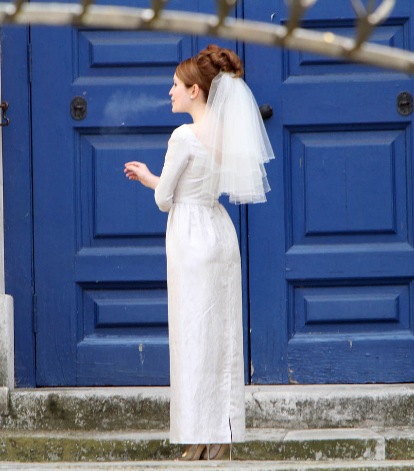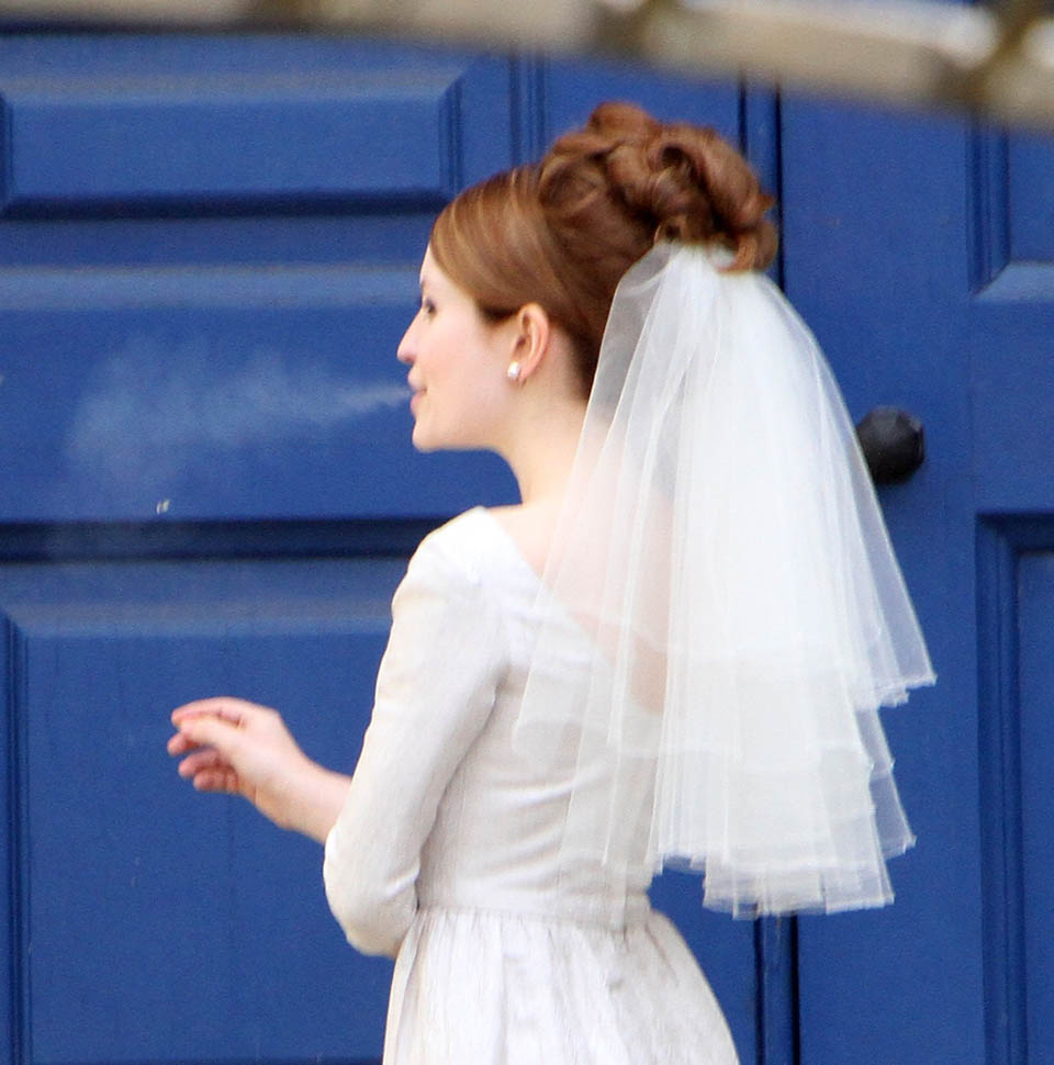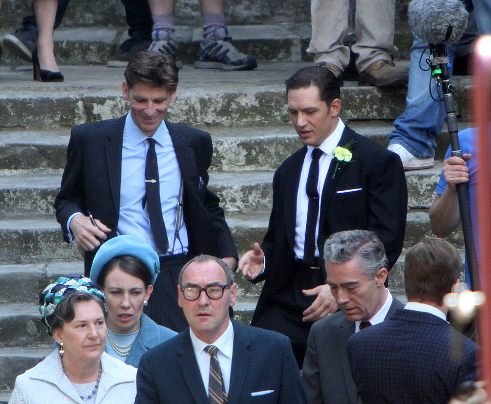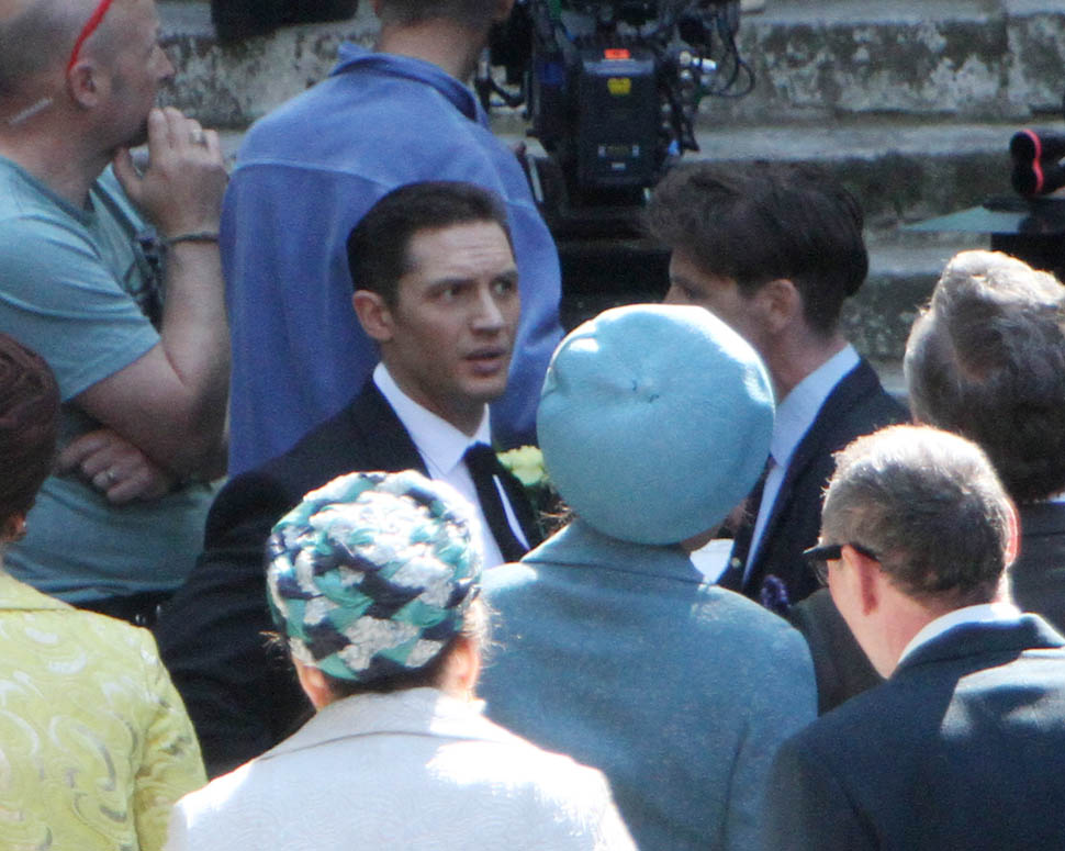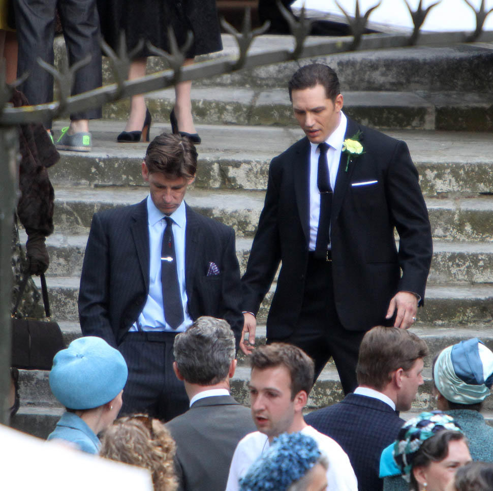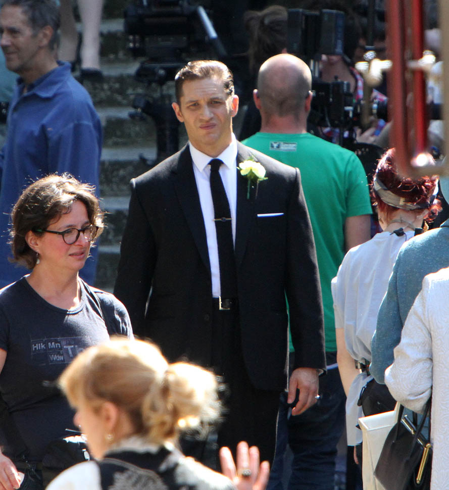 Tom Hardy continues to work on Legend in London. It was evidently a wedding scene today, Emily Browning as the bride. She had to pop out for a cigarette during break. I’m not supposed to say this but I love seeing a smoking bride. Because the image is so offensive to some people. Like on my wedding day, in my white dress, when I popped out for a drag, my ma was apoplectic.