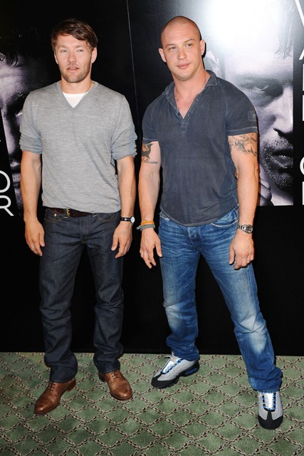 Tom Hardy and Joel Edgerton are in Paris today to promote their movie Warrior. As you can see, Tom is... kinda beefy right now. He’s been working on The Dark Knight Rises. He will be the villain. Needless to say, at least without any makeup on, his villain looks like Bronson without the moustache. Have you seen Bronson? Or, more specifically, have you seen him in Bronson?