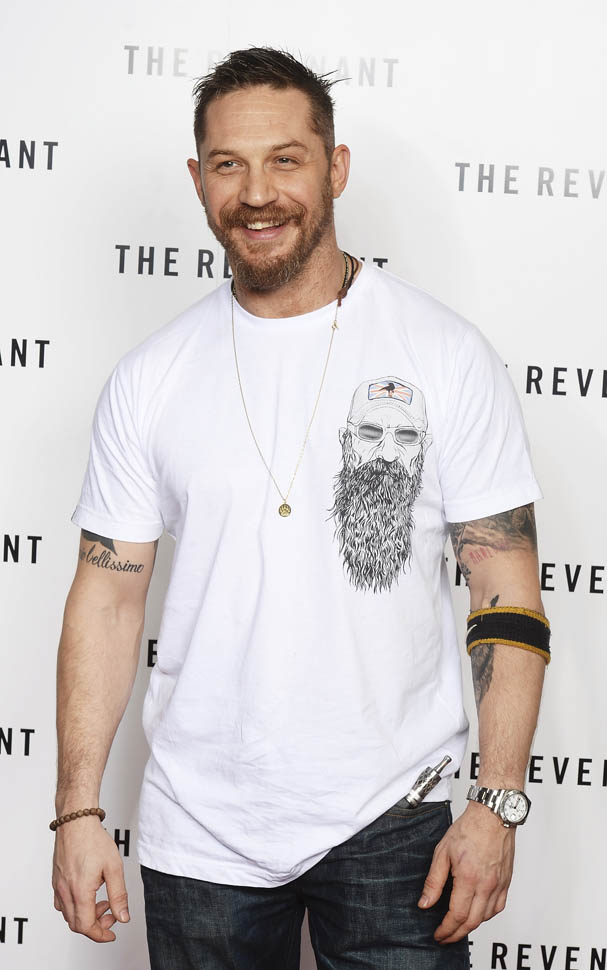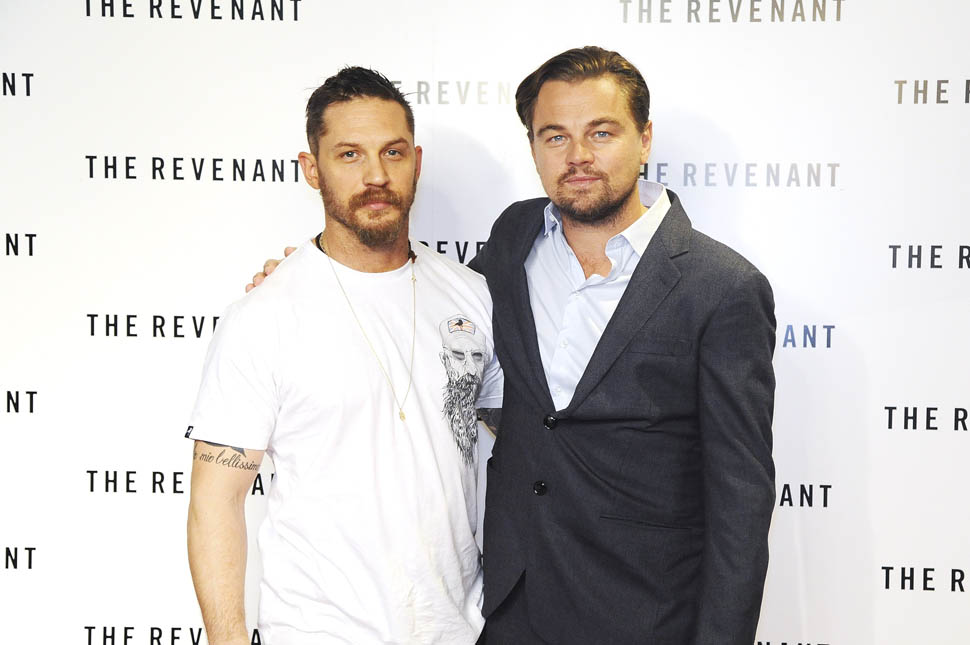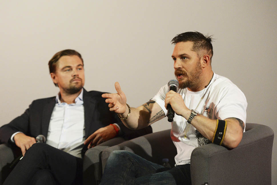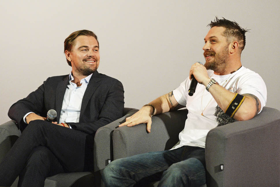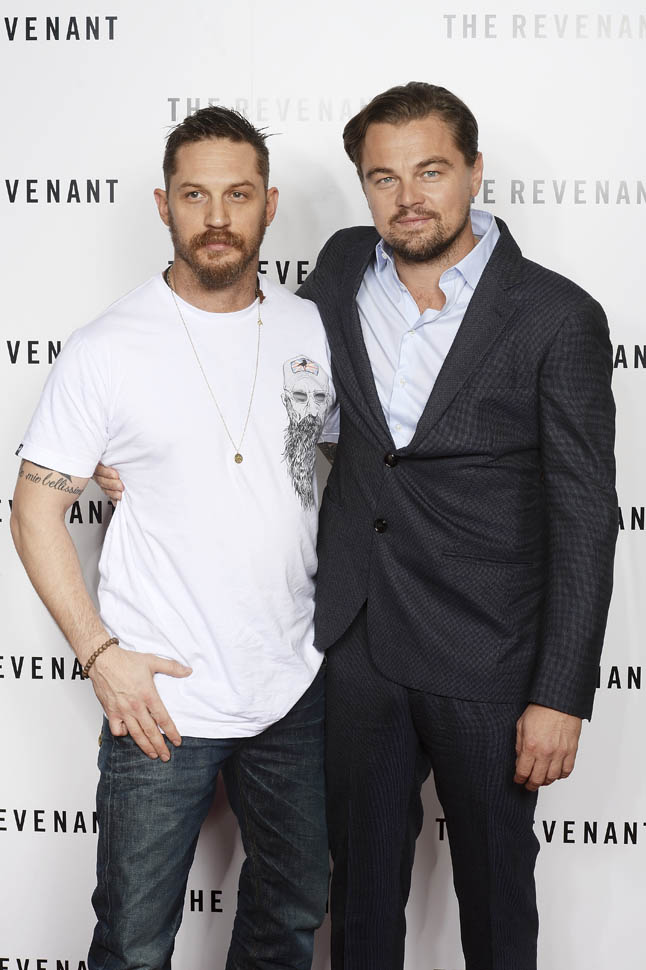 Tom Hardy and Leonardo DiCaprio were in London together yesterday at a BAFTA screening for The Revenant. All we hear from The Revenant is about Leo’s performance. And even though many experts are predicting that Tom will be recognised for his work with a Best Supporting Actor nomination, Leo’s been eating up all the headlines related to the film with all his meat eating, bear f-cking, and being cold.