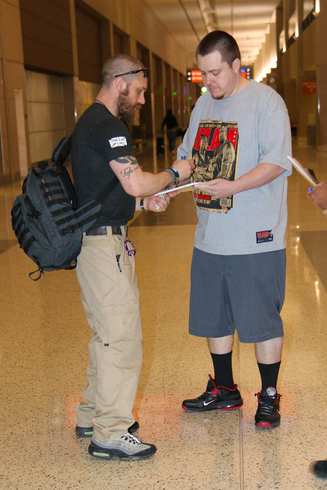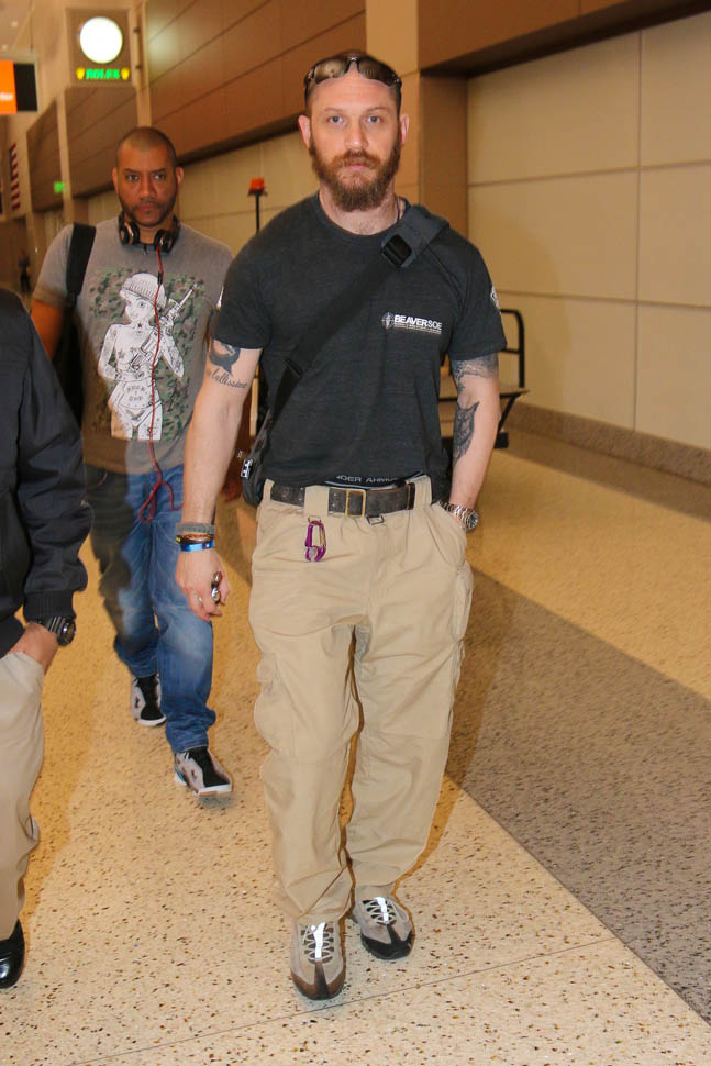 Both Tom Hardy and Nicholas Hoult were photographed arriving in Vegas yesterday ahead of CinemaCon. So they're presumably there for Mad Max: Fury Road, opening in less than a month.