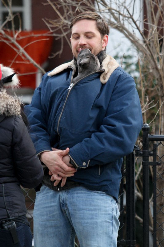 Tom Hardy + Puppy, for the weekend. So it’s ok if you f-ck around today, rendered useless from so much cute. And please I don’t want to think about the puppy after. Like when the movie wraps and he’s all, wait a minute, I was so boss for a few weeks there and everyone cared about me and now why is my life so ordinary? Whose puppy is it anyway? Do we have to wait ‘til the junket to find this out? At least give us a name.