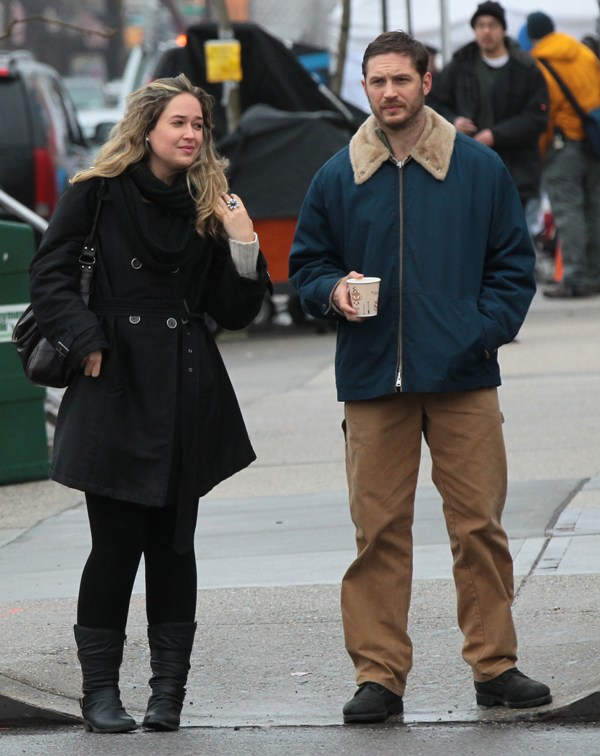 I’m also attaching photos of Tom Hardy with a production assistant type earlier this week. Because the week before that I received a tip from K who wrote: