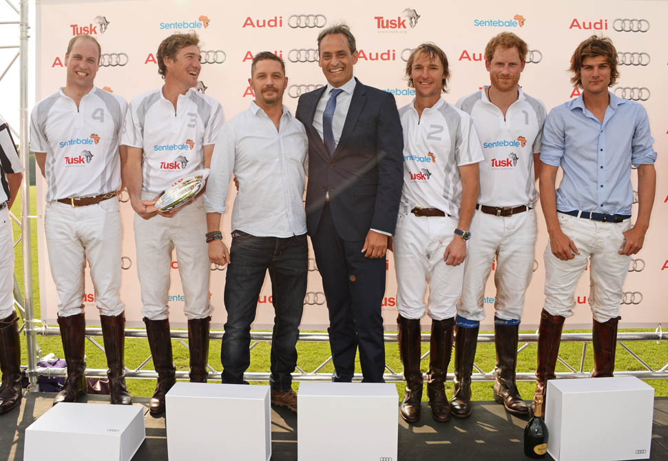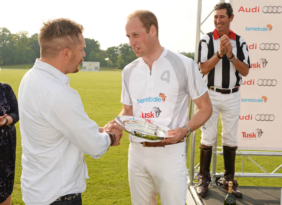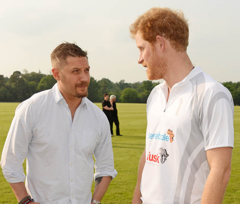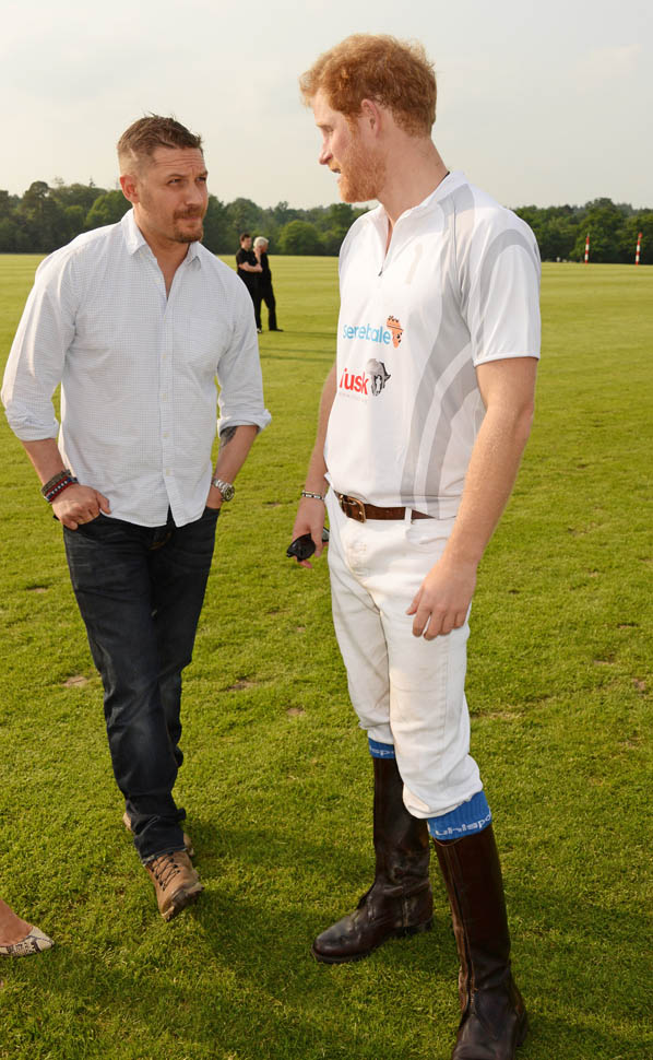 Princes William and Harry were at the Audi Polo Challenge this weekend. Tom Hardy is an Audi ambassador so he made an appearance too. And they all posed together and, well, Tom did his standing thing. By standing I mean with his legs wide. Tom Hardy is the Manspreader among men. Because if he can’t be tall enough he may as well be man enough? That’s my interpretation. And it’s funny. Animal kingdom dude behaviour is funny.
