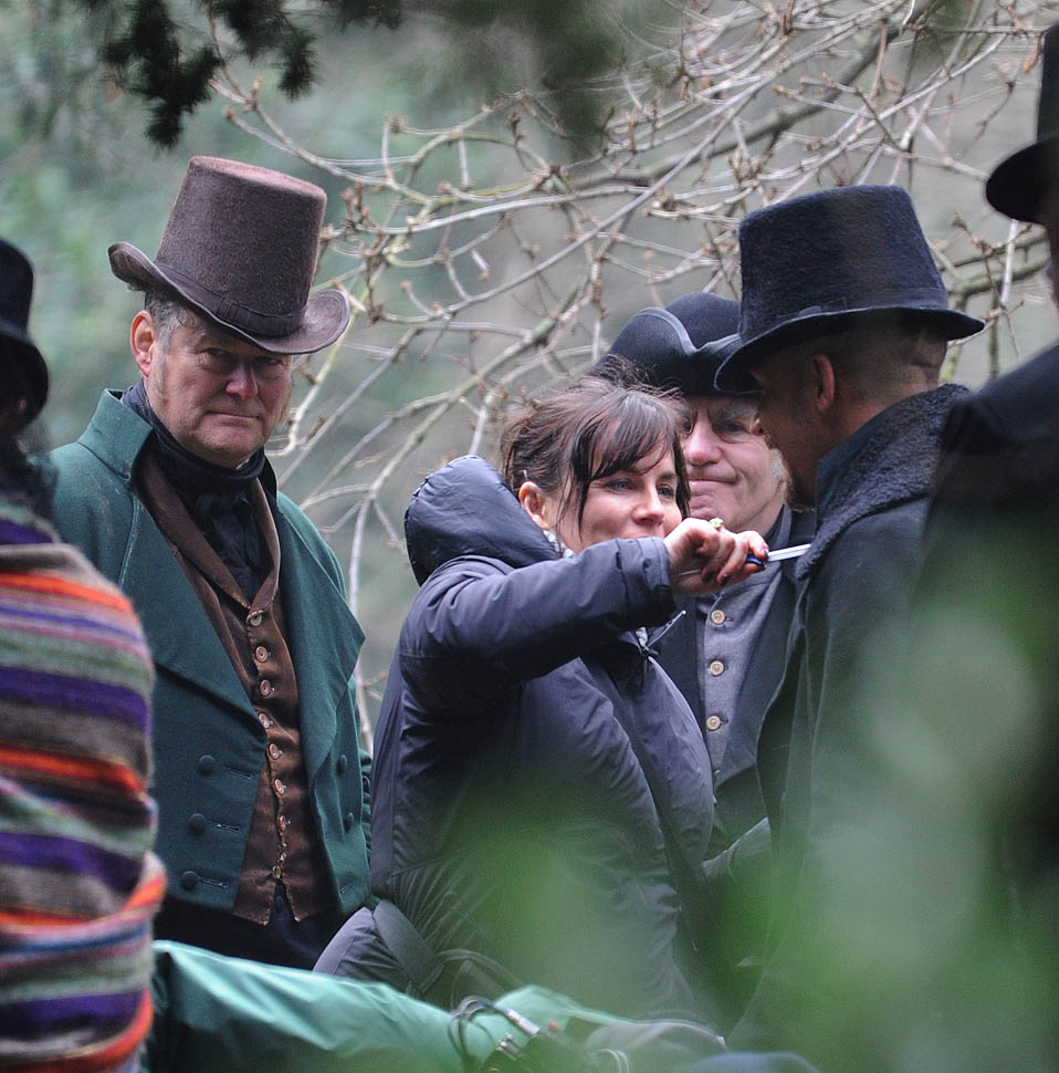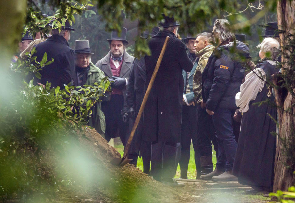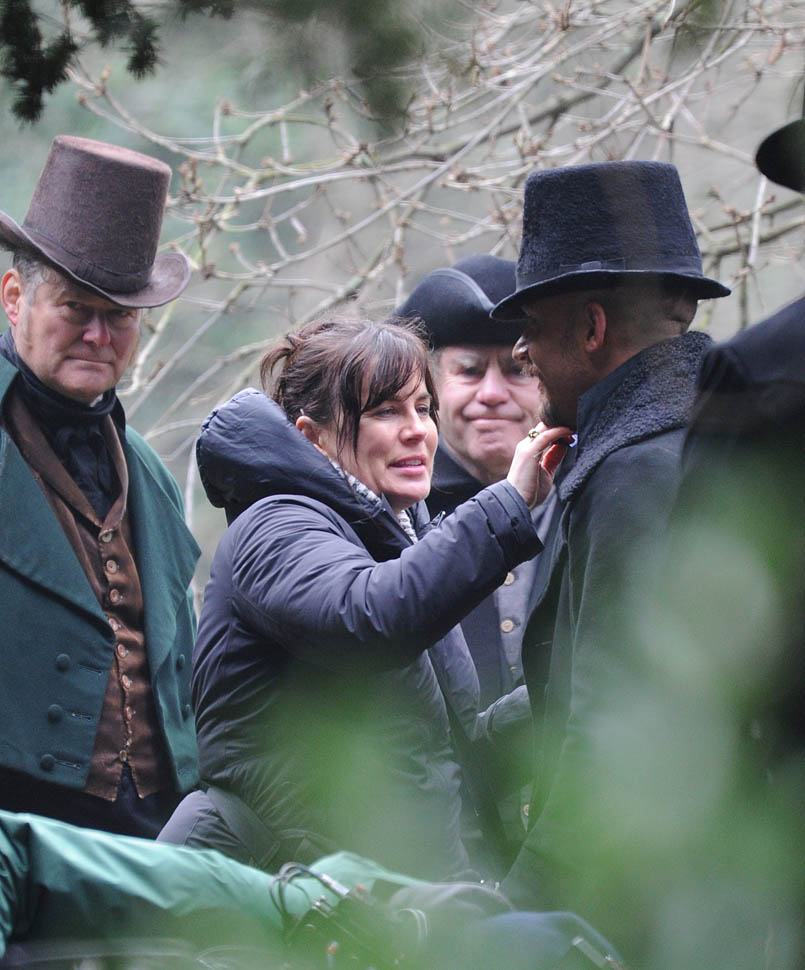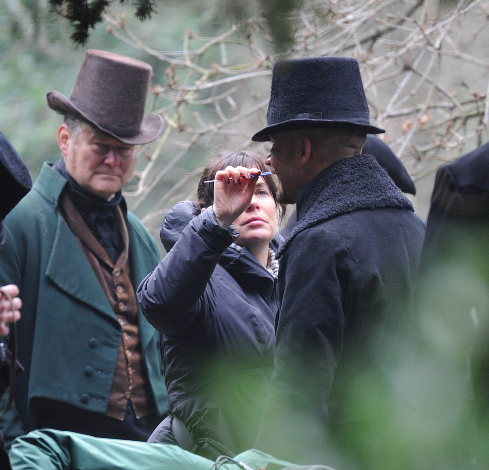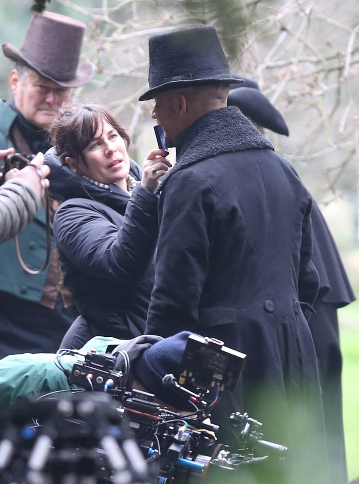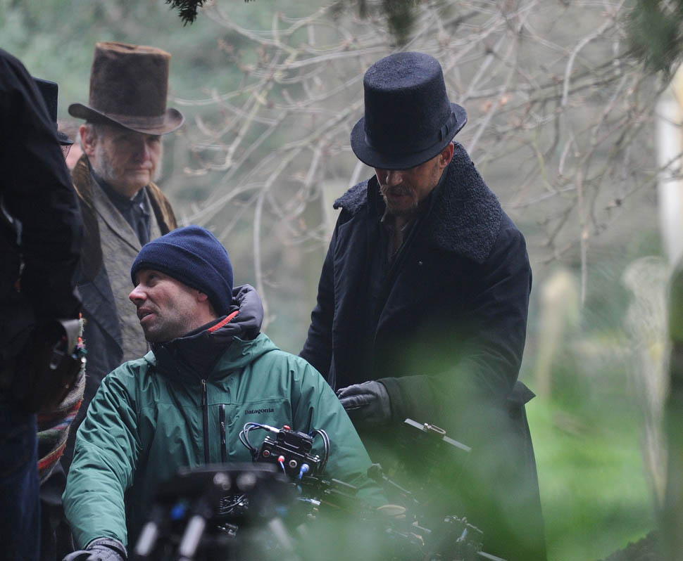 Here he is in England today shooting Taboo. At one point, a makeup artist was seen combing his beard.