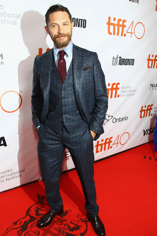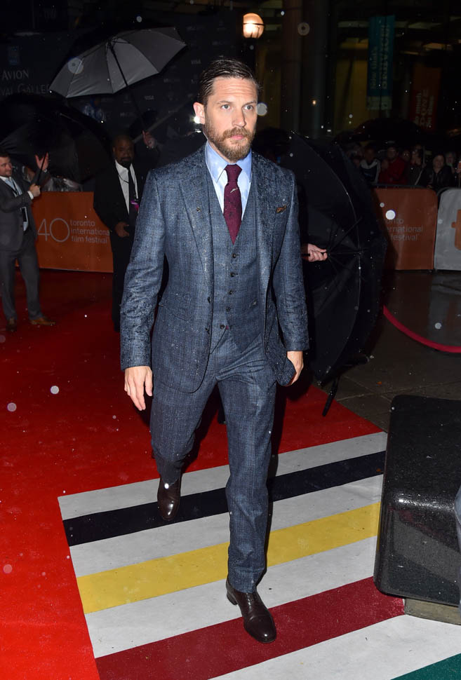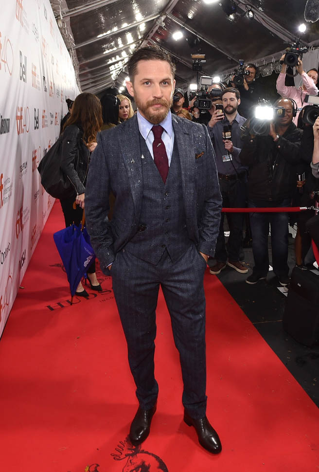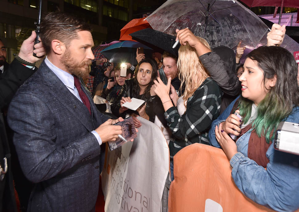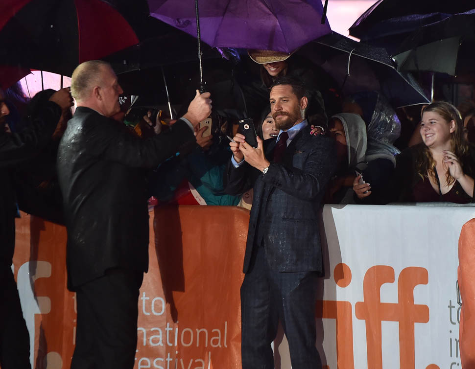 It was pouring on Saturday night for the Legend premiere at TIFF. And the fans, they stood out there in the rain, waiting patiently for Tom Hardy. Meanwhile, I was under the red carpet awning, waiting impatiently for an interview. It didn’t happen.