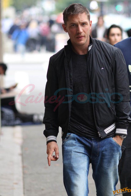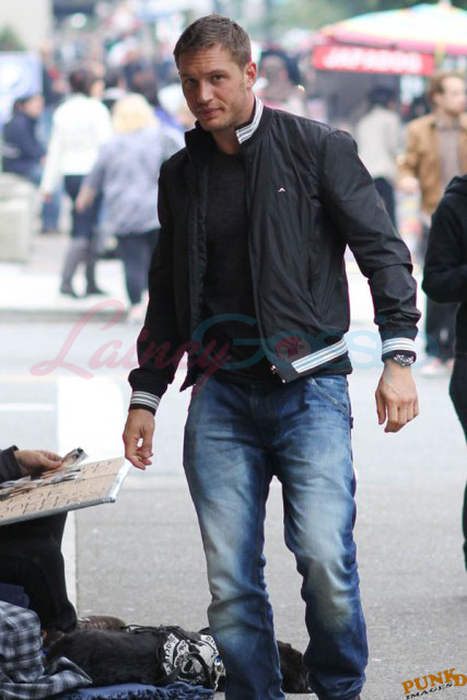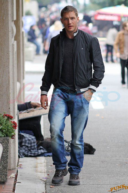 This is Tom Hardy in Vancouver to shoot This Means War with Chris Pine and Reese Witherspoon (who is also now in town, spotted at Cafe Medina and Aritzia this weekend). There’s not much to say, really, about these photos other than: