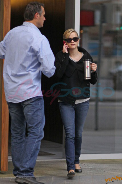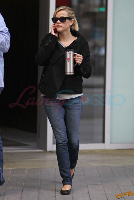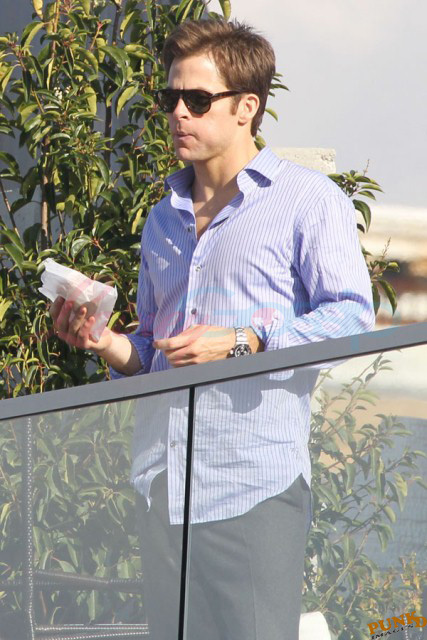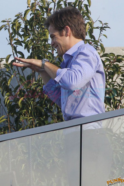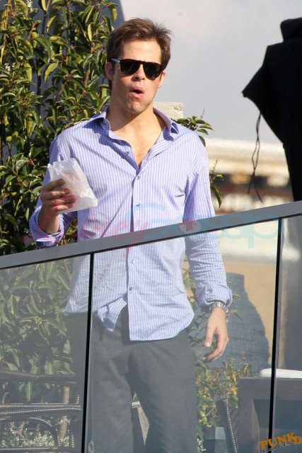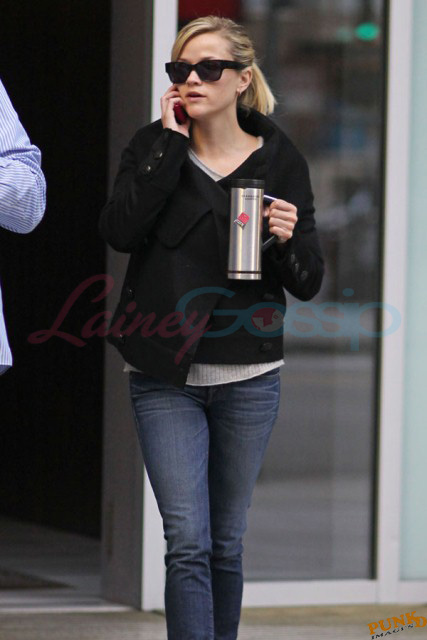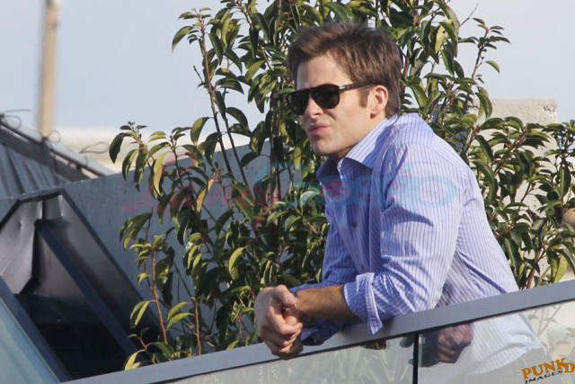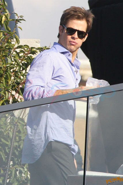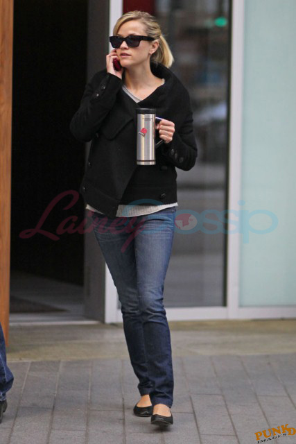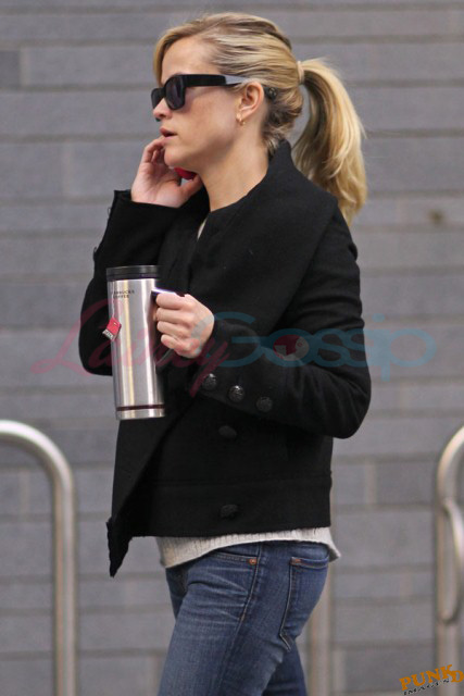 Also attached, Hardy’s co-stars in This Means War Reese Witherspoon getting her morning coffee on the way to work today and Chris Pine yesterday on break from shooting.