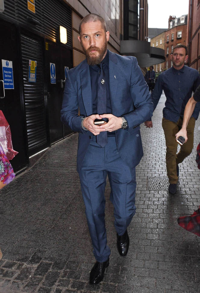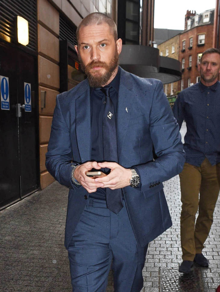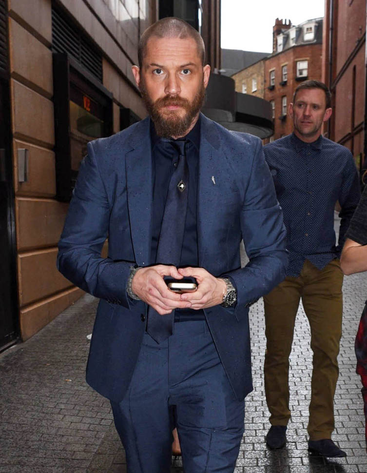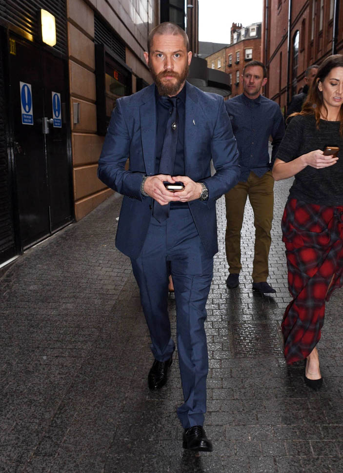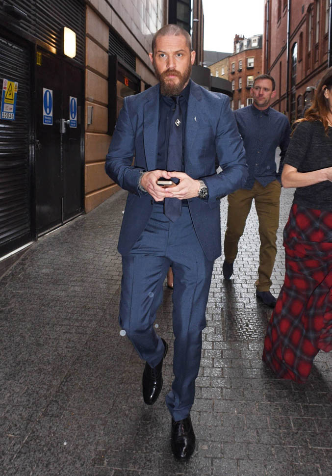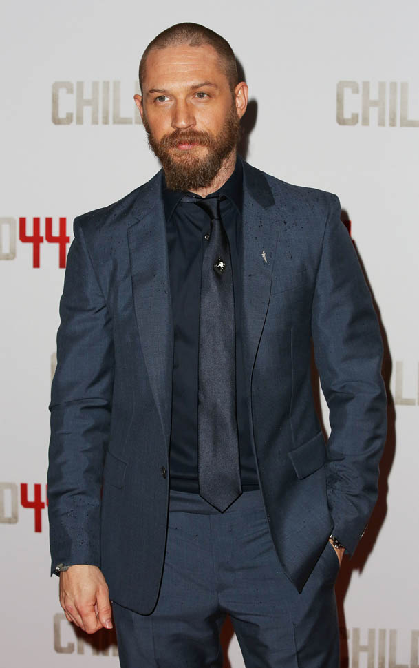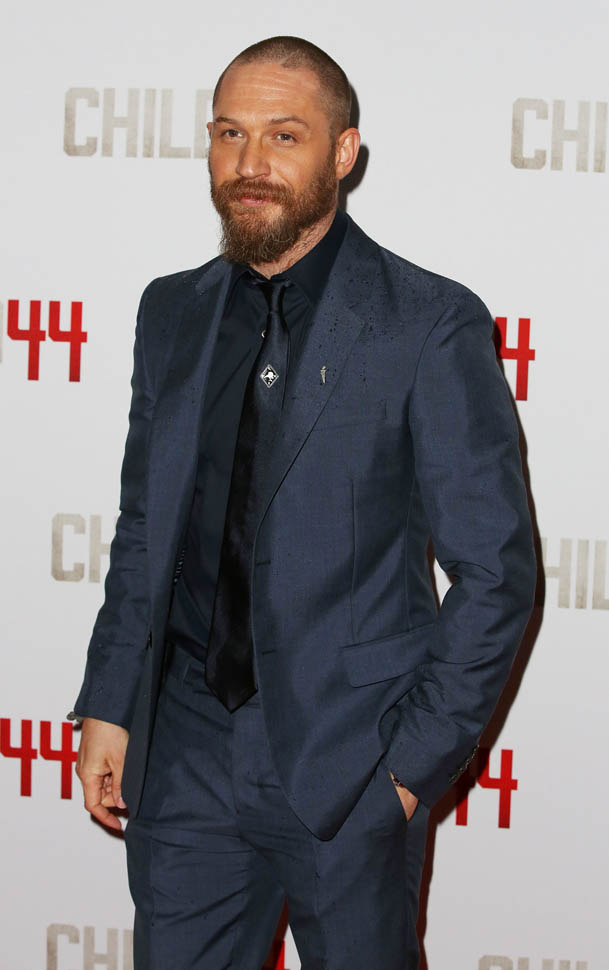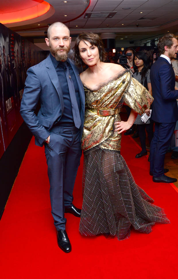 Two days in a row of Tom Hardy. He’s at the Child 44 premiere with Noomi Rapace. I said I wanted to see him in a well-tailored suit. He’s in a well-tailored suit. Is that working for you?