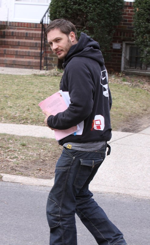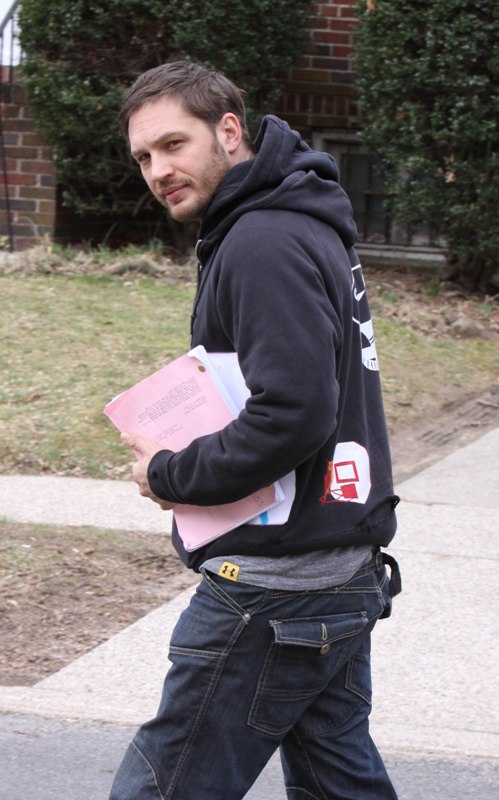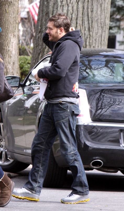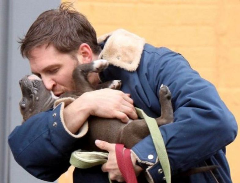 Anyway, puppy or not, it's not a bad start to the weekend, Tom Hardy photos. Here he is continuing to shoot Animal Rescue in Brooklyn yesterday.