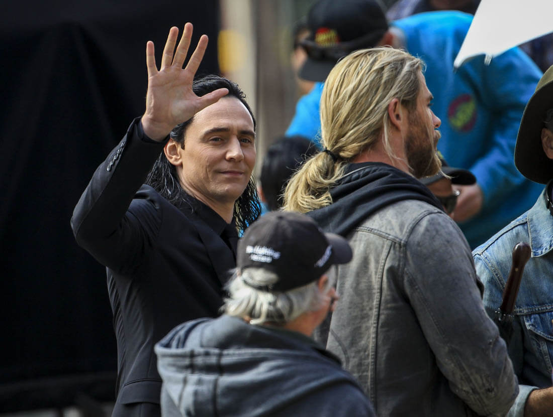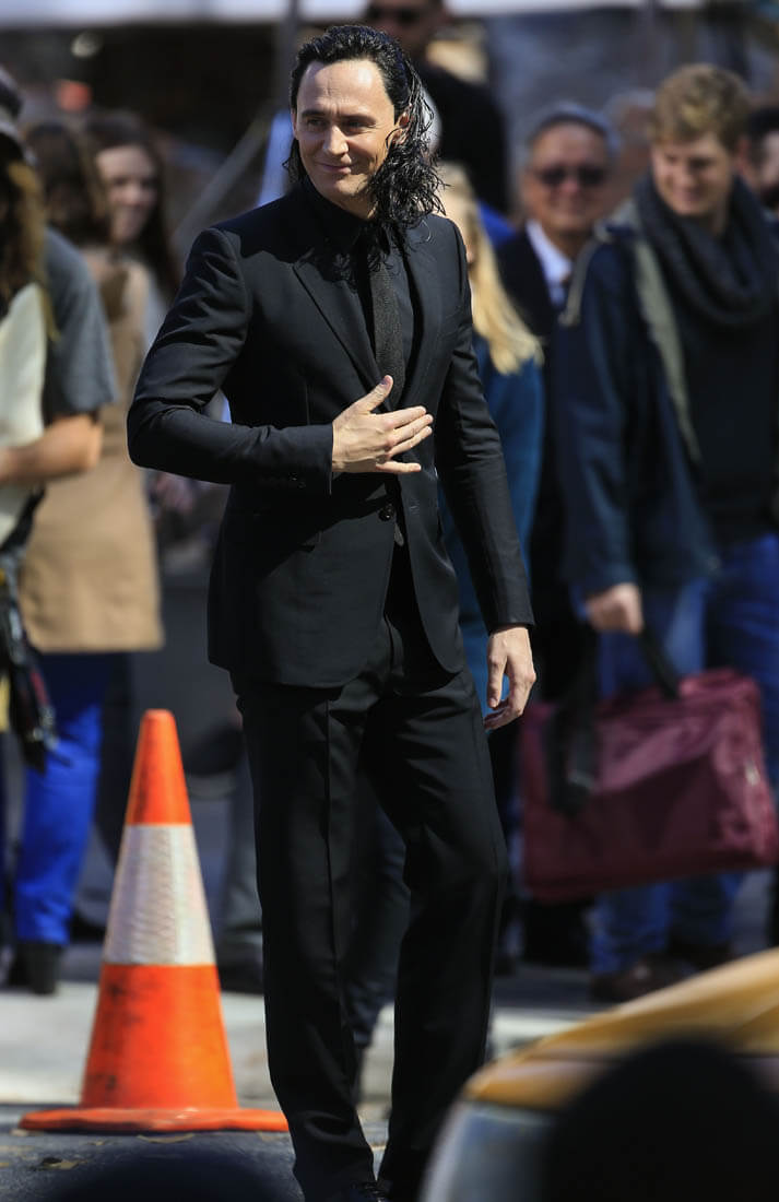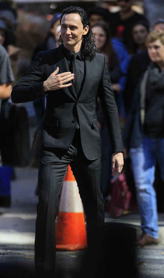 Anyway, they were both great with fans who’d gathered around, accommodating their requests for pictures and waving to the media who showed up too. As you can see, Tom, in particular, is in a great mood. There’s really nothing he loves more than being Loki. Unless, of course, he becomes Bond. If he becomes Bond, poor Loki will get demoted.
