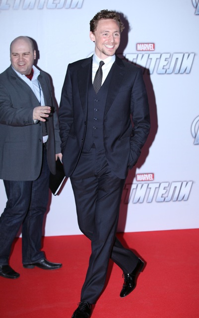 I meant to post these yesterday but wasn’t feeling great. This is Tom Hiddleston on Tuesday in Moscow at the Russian premiere of The Avengers. Like I said the other day, click here for a refresher, he really isn’t photogenic, I get it. If I had not interviewed him in person I wouldn’t know either. In two dimension, still photographs, it’s hard to appreciate. Also I’m not super excited about him a suit. He’s much better dressed down, I promise.