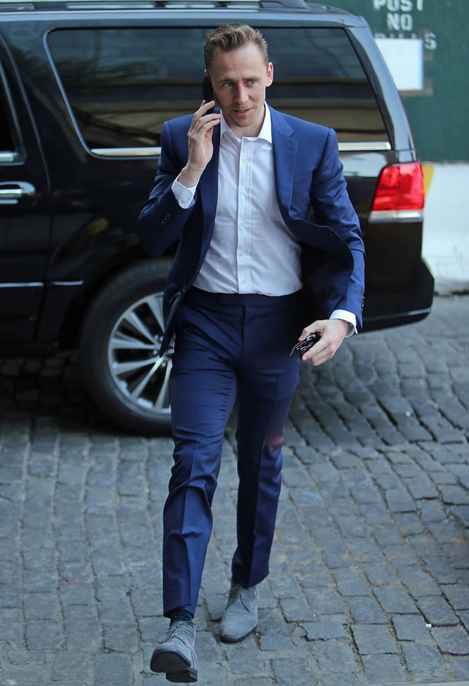 Attached - Tom Hiddleston out in New York yesterday.