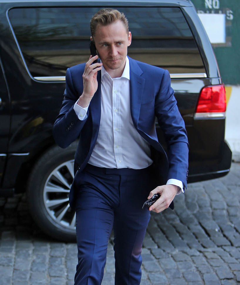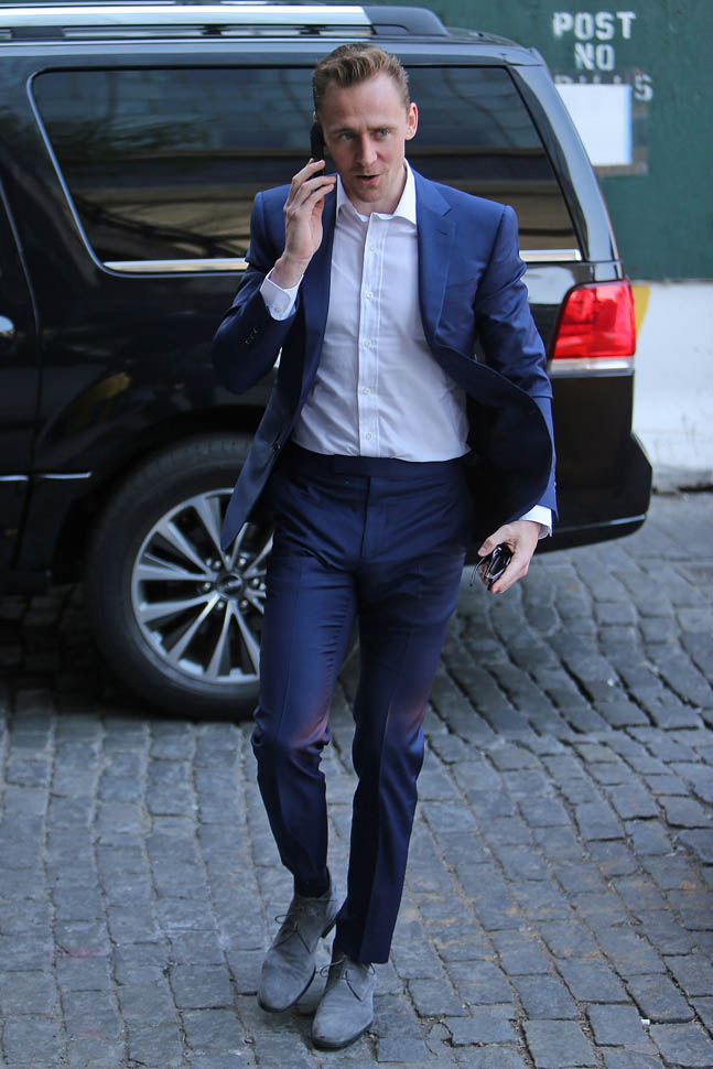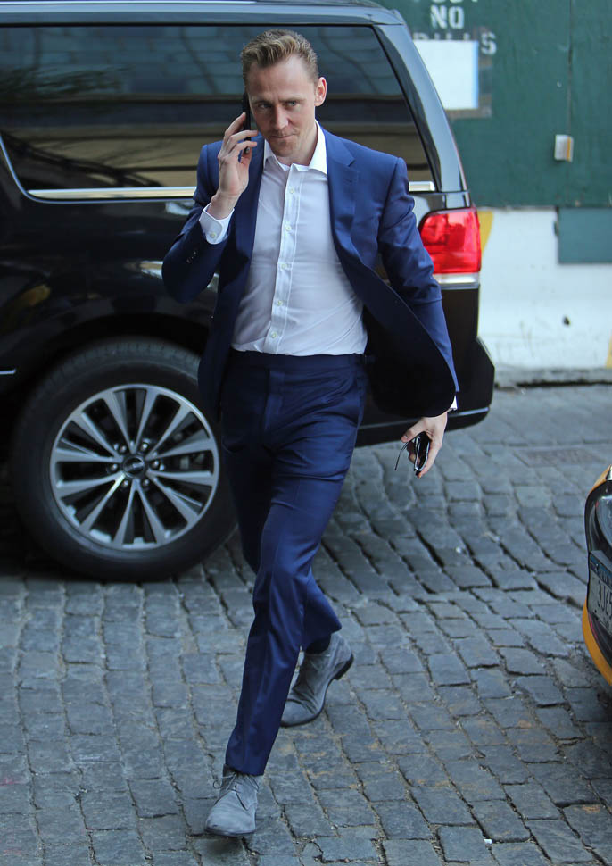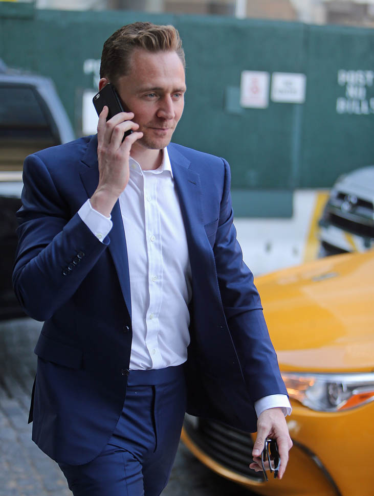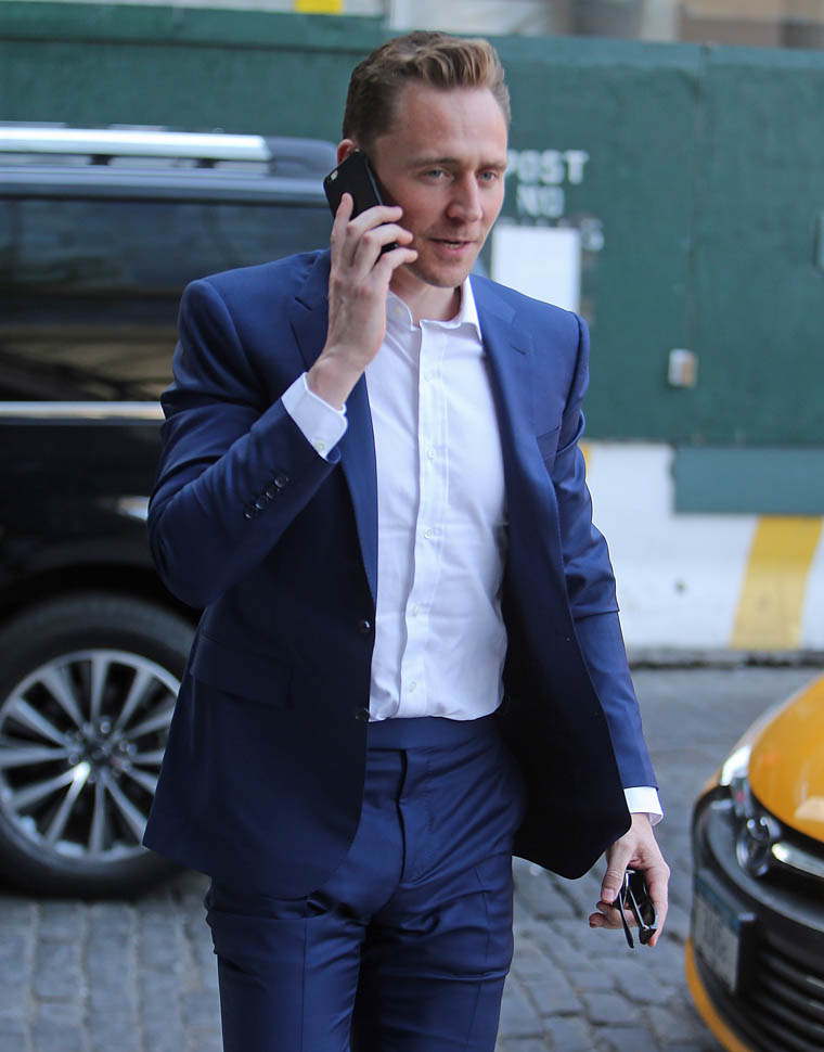 Attached - Tom Hiddleston out in New York yesterday.